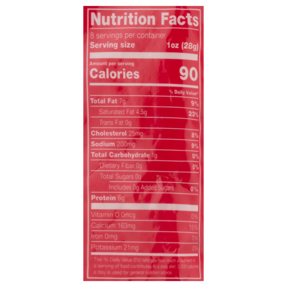 Ingredients: Low-Moisture Mozzarella Cheese (Cultured Pasteurized Milk, Salt, Enzymes), Powdered Cellulose (Anti- Caking Agent).