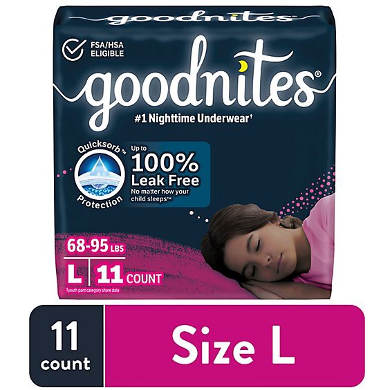 Goodnites Girls' Nighttime Bedwetting Underwear Size Large (68-95 Lbs) - 11 Count