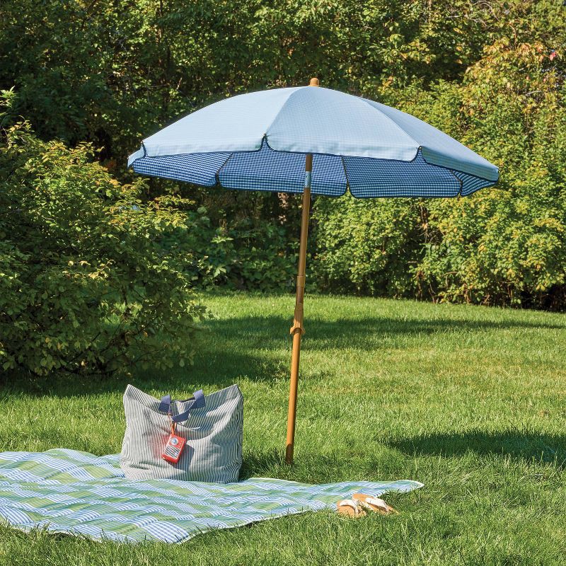 - Blue gingham beach umbrella