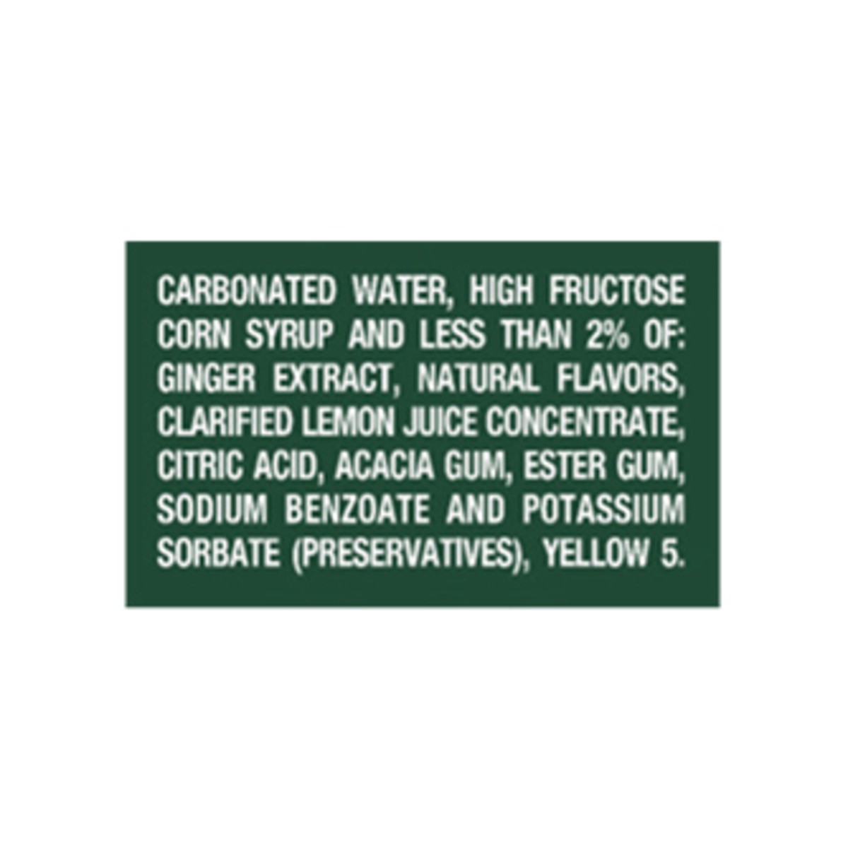 Carbonated Water, High Fructose Corn Syrup and Less than 2% of: Ginger Extract, Natural Flavors, Clarified Lemon Juice Concentrate, Citric Acid, Acacia Gum, Ester Gum, Sodium Benzoate and Potassium So…