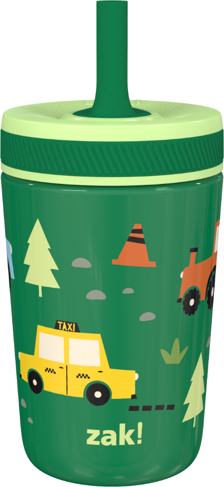 Zak! Designs Trucks and Cars Stainless Steel Double Wall Vacuum Leakproof Straw Kelso Tumbler, 12 fl oz