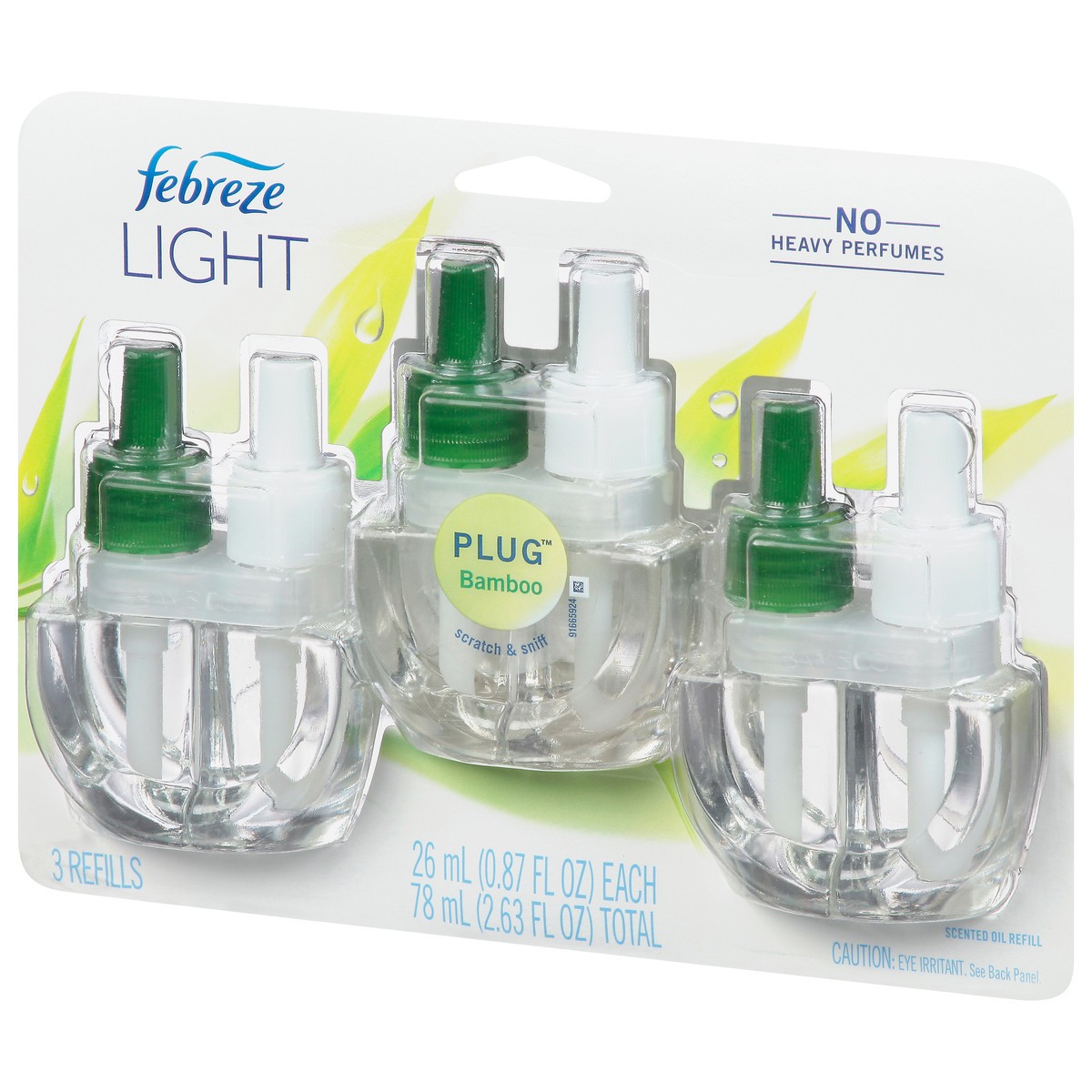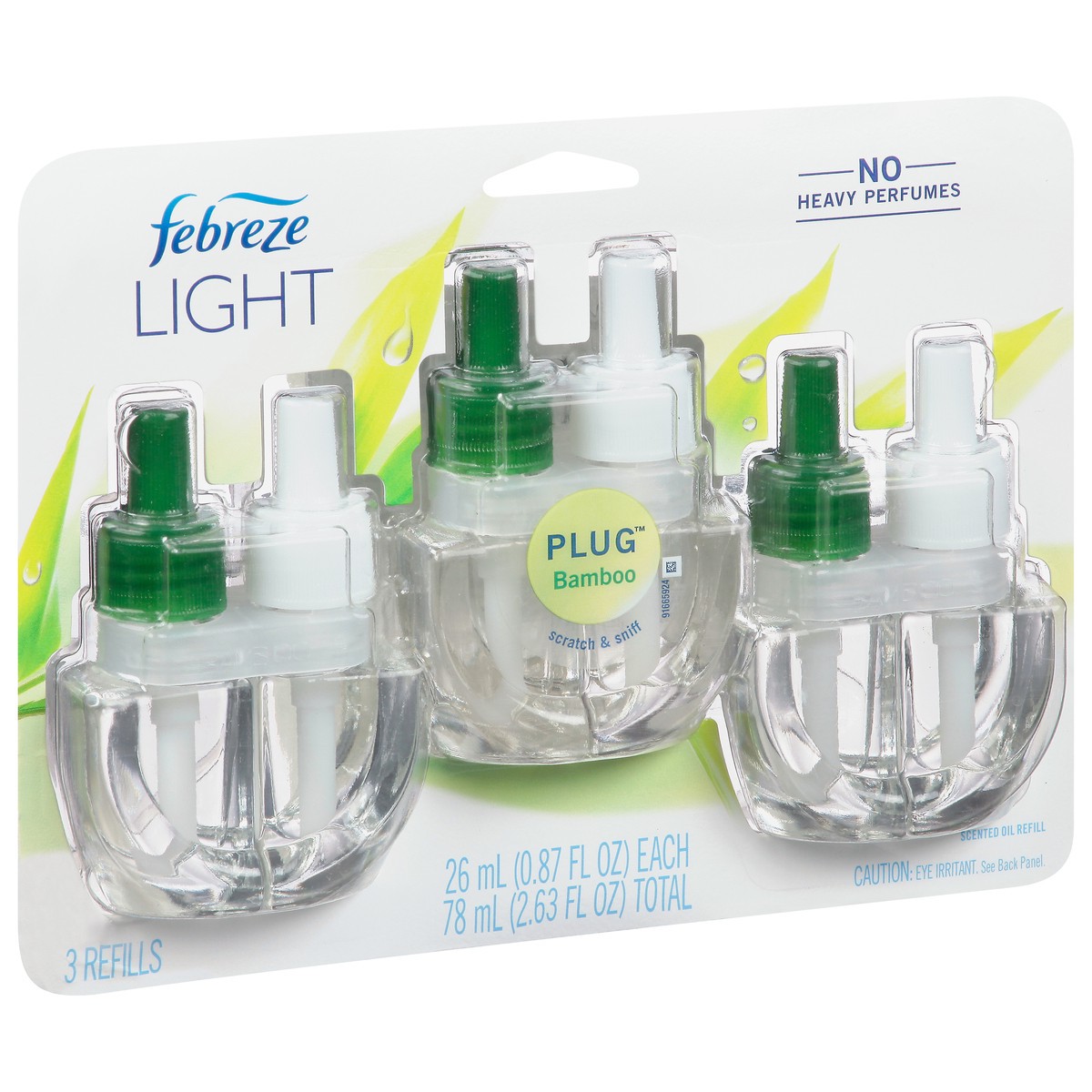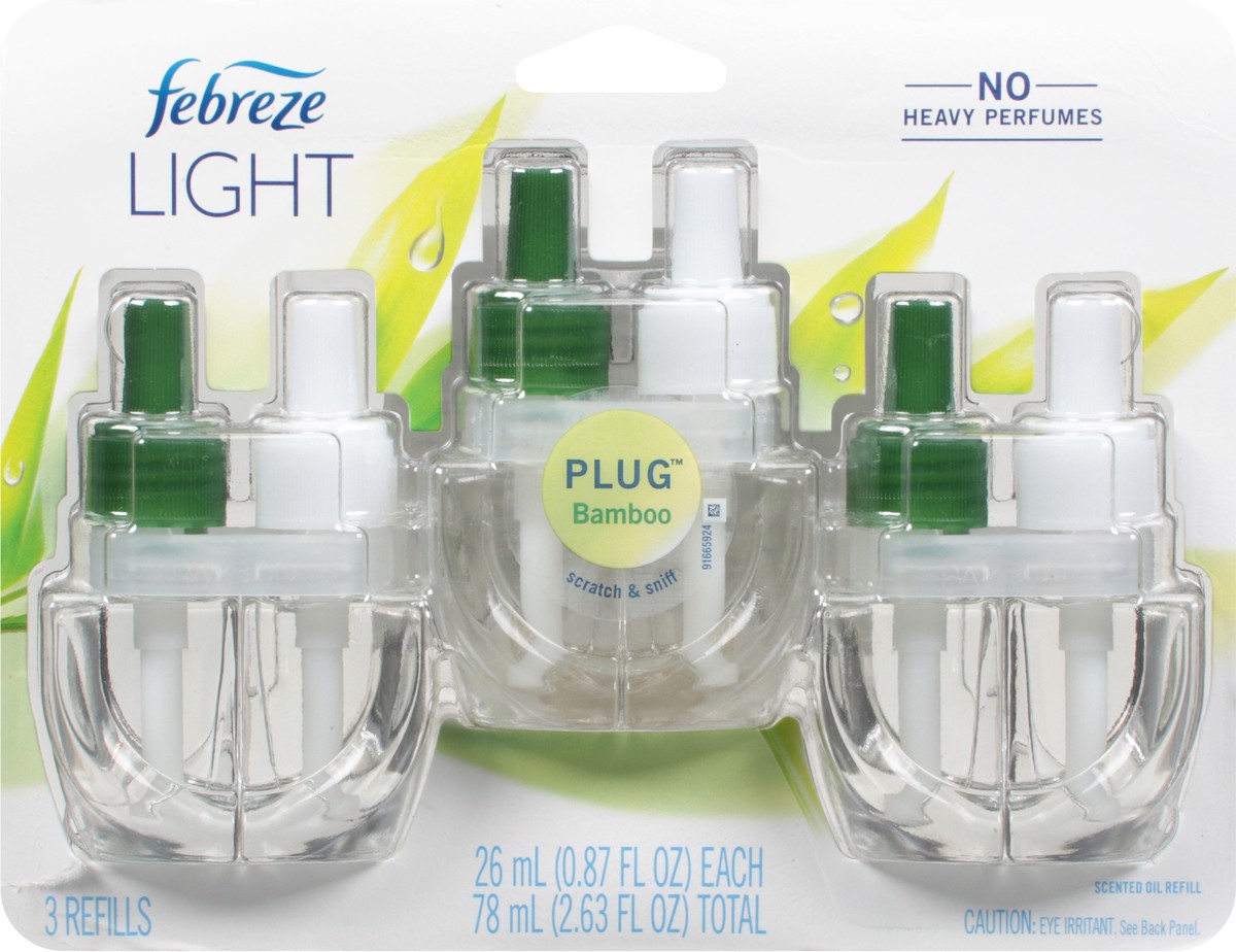 Febreze Plug In Air Freshener, Odor-Fighting Scented Oil Refill, Light Bamboo Scent, 3 Refills