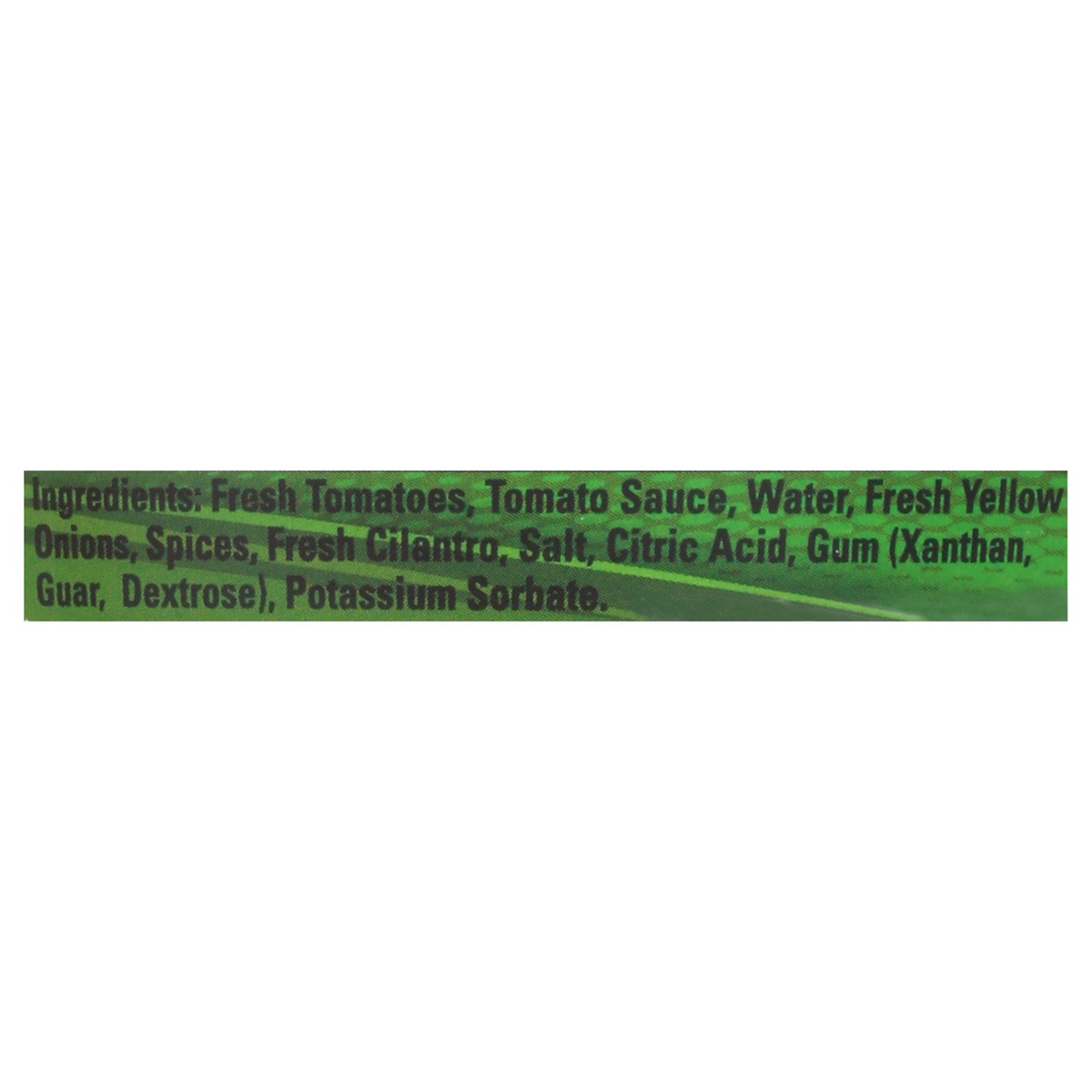 Fresh Tomatoes, Tomato Sauce, Water, Fresh Yellow Onions, Spices, Fresh Cilantro, Salt, Citric Acid, Gum (Xanthan, Guar, Dextrose), Potassium Sorbate.