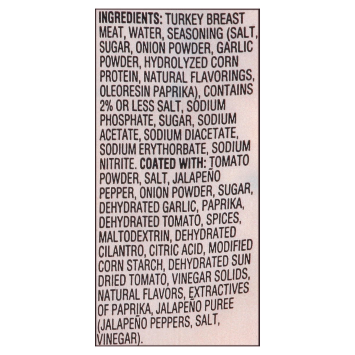 Turkey Breast Meat, Water, Seasoning (Salt, Sugar, Onion Powder, Garlic Powder, Hydrolyzed Corn Protein, Natural Flavorings, Oleoresin Paprika), Contains 2% or Less Salt, Sodium Acetate, Sodium Diacet…