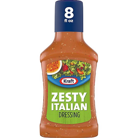 Kraft Zesty Italian Dressing adds deliciously zesty flavor to almost anything. Bursting with tangy vinegar and dried red bell peppers, our family favorite Italian dressing delivers Italian flavor in e…