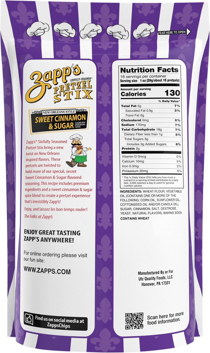 Zapp's Sweet Cinnamon & Sugar Pretzel Stix 16 oz