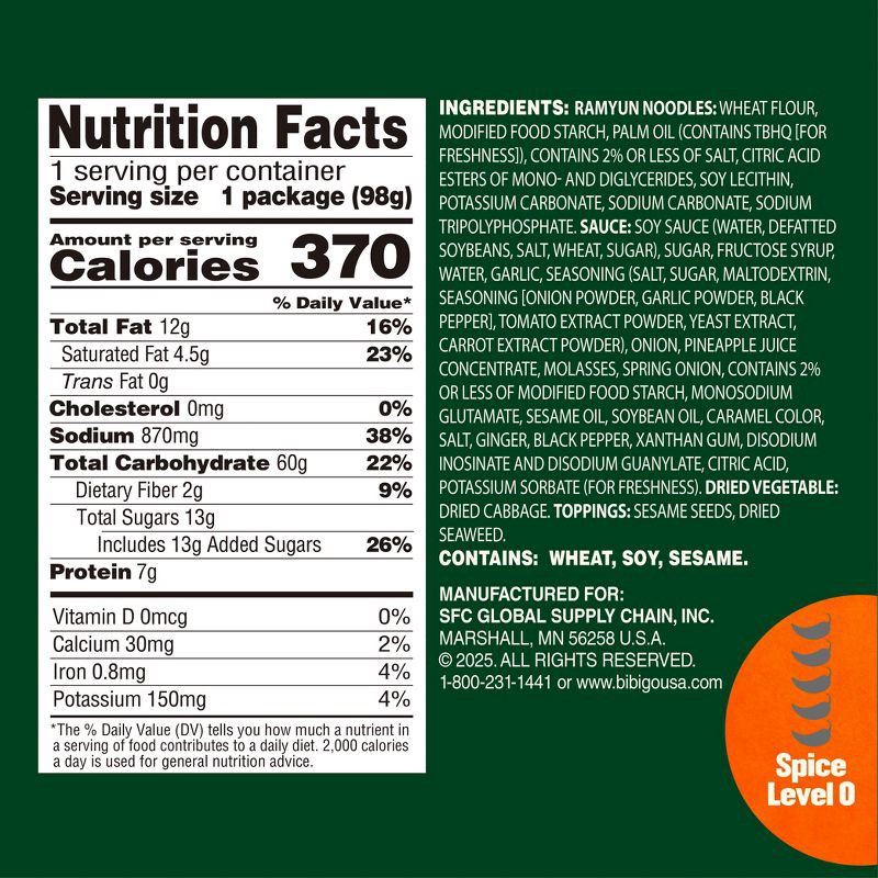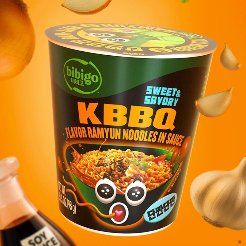 - One 3.45 oz cup of bibigo Sweet & Savory KBBQ Flavor Korean-Style Instant Ramyun Noodles