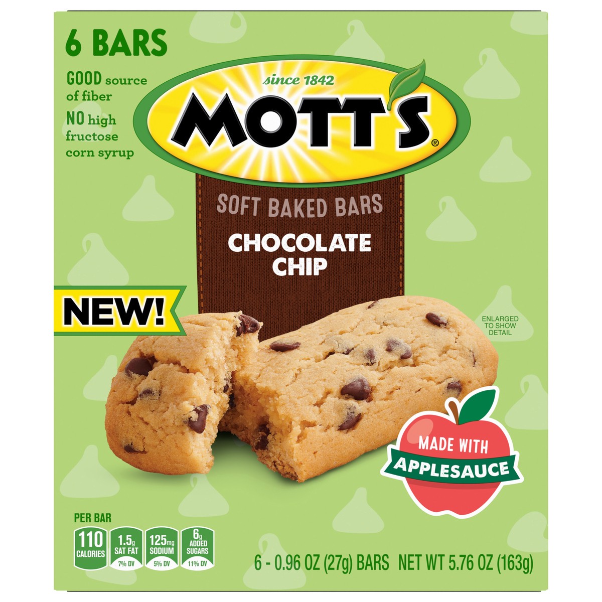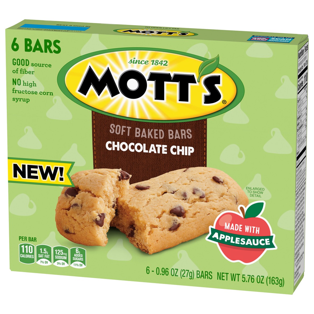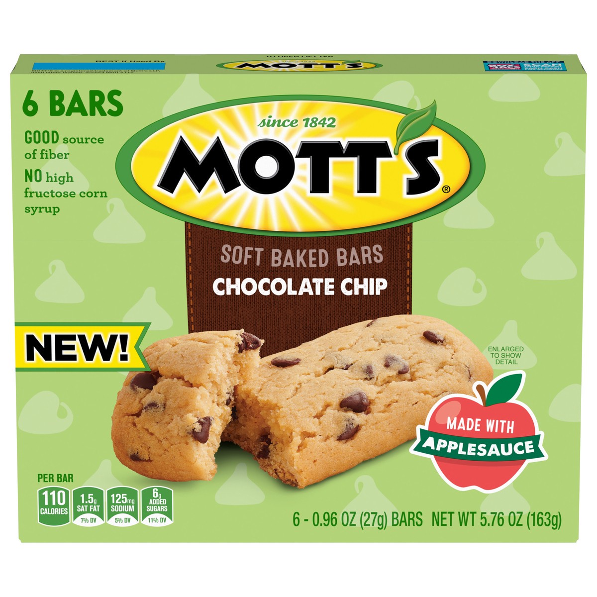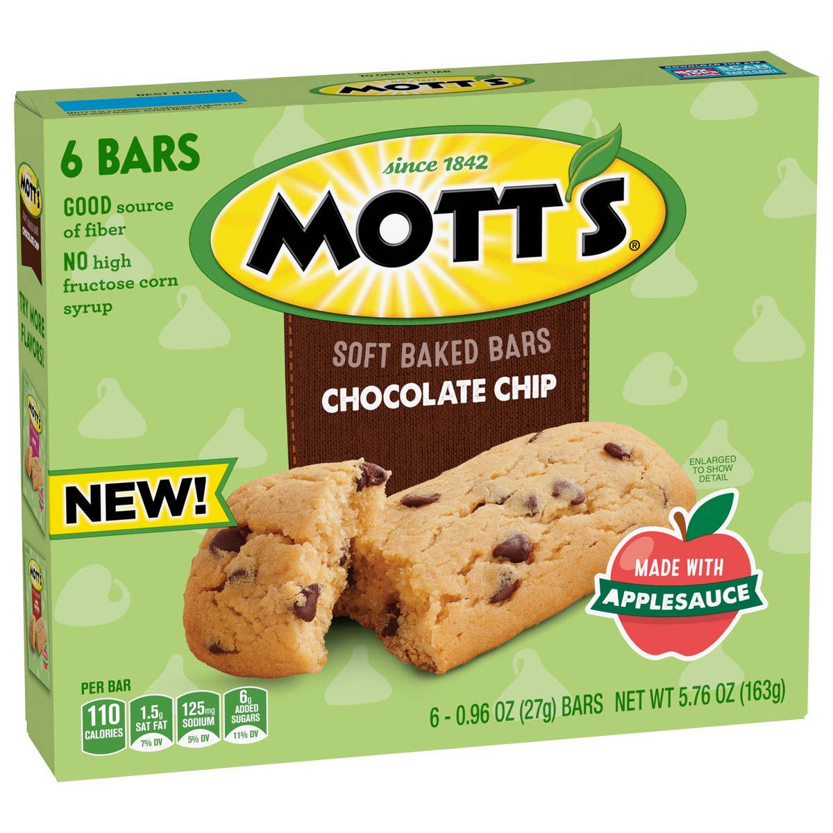 Soft Baked Goodness. For the morning wake-up call you'll crave. Mott's Soft Baked Chocolate Chip Bars contain no high fructose corn syrup and are a good source of fiber. A portable snack perfect for t…
