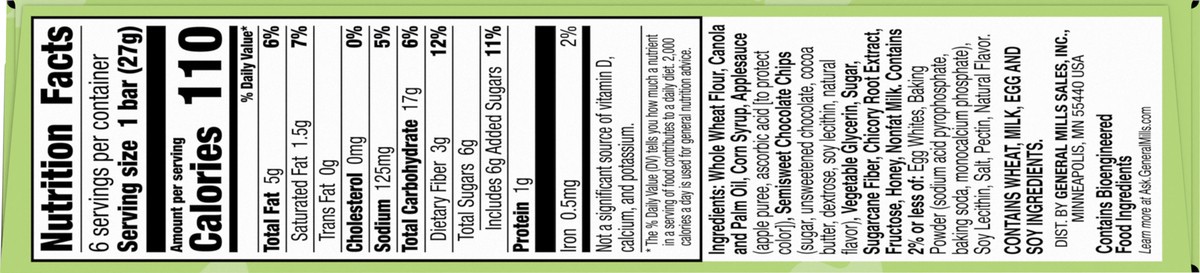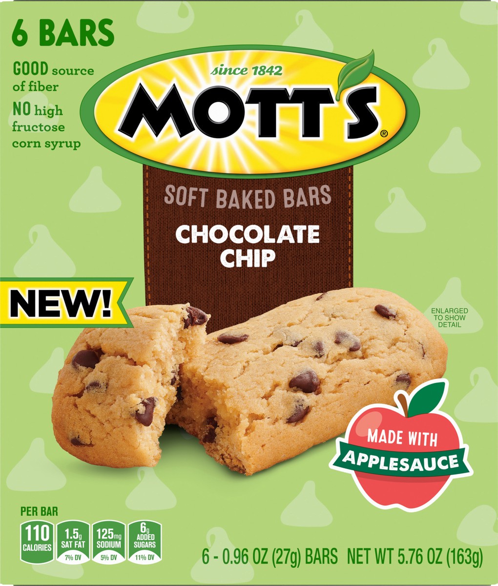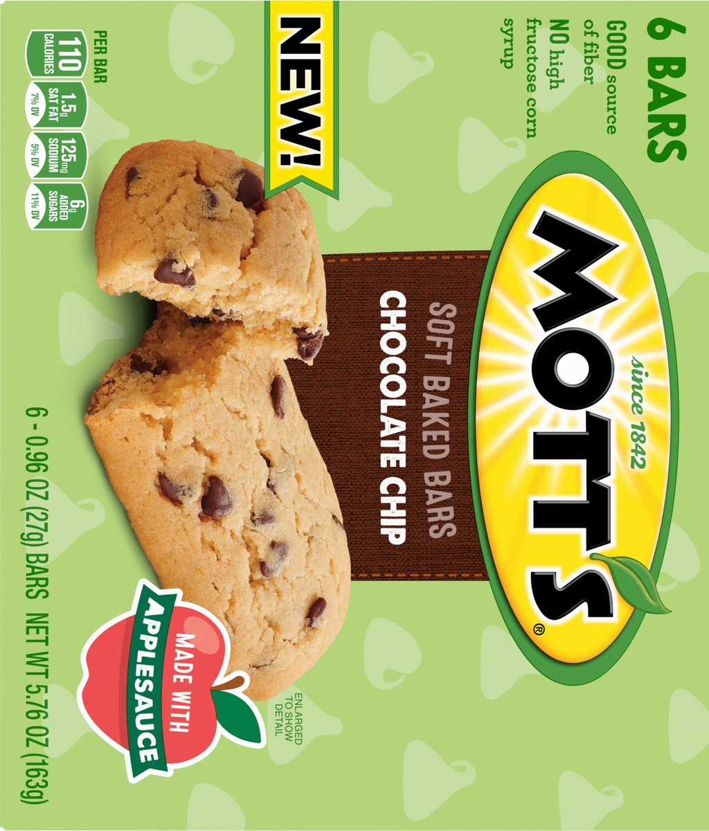 Mott's Soft Baked Bars, Chocolate Chip, Made with Applesauce, 6 Count, 5.76 oz