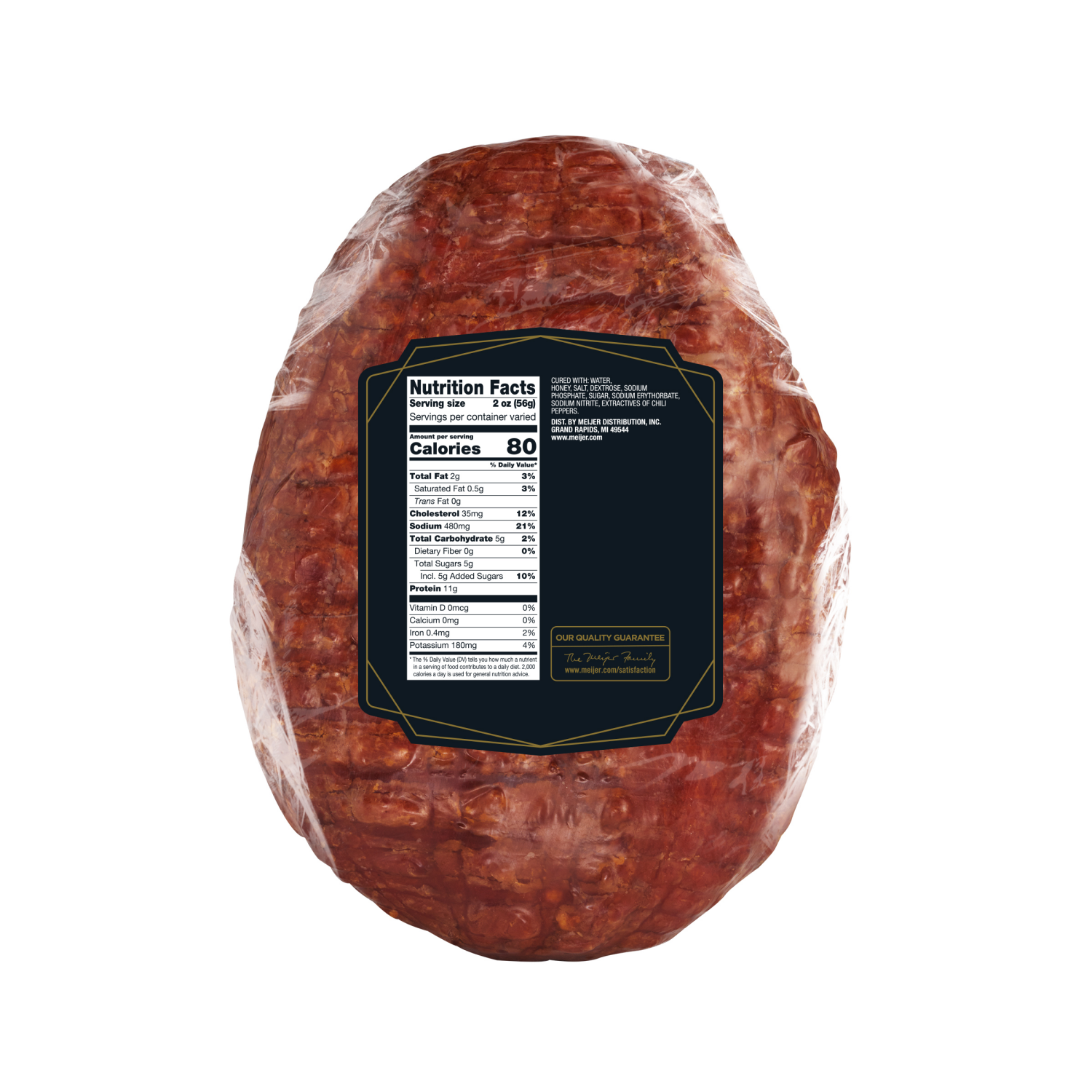 Savor Frederik's by Meijer Hot Honey Ham, with a rich, smoky flavor infused with a touch of hot honey. Fully cooked and ready to enjoy, this product offers convenience without compromising on taste.