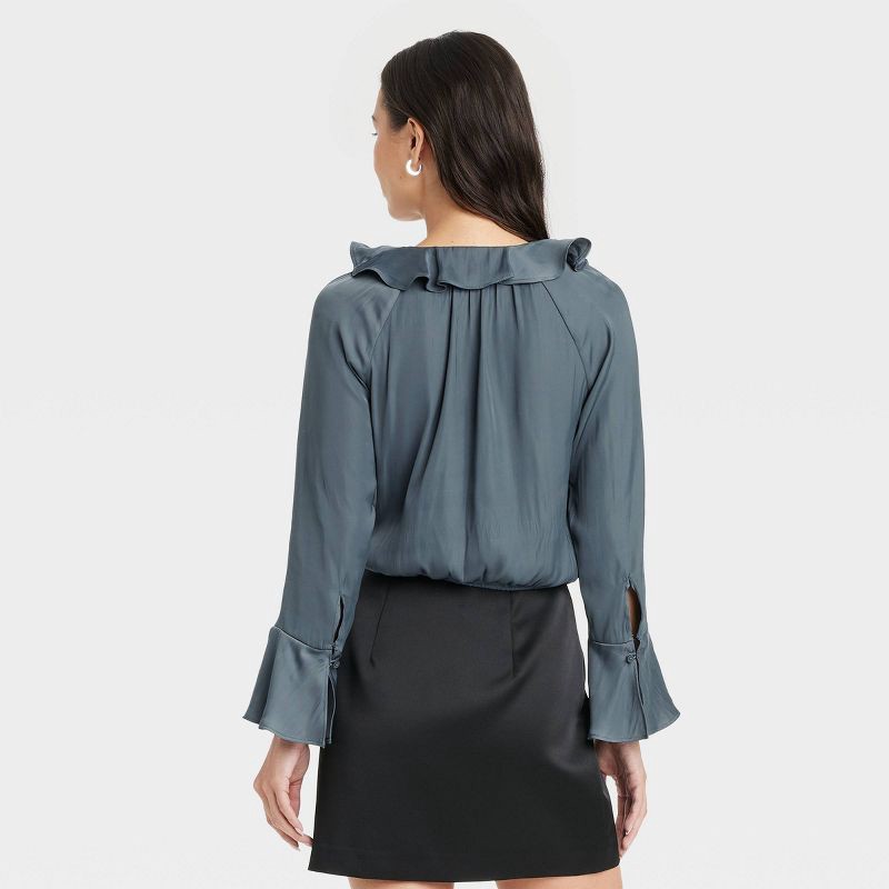 Dress up for office meeting or casual outings in easy-breezy style with this Flounce Long-Sleeve V-Neck Ruffle Wrap Blouse from A New Day™. This long-sleeve wrap blouse is made from recycled polyester…