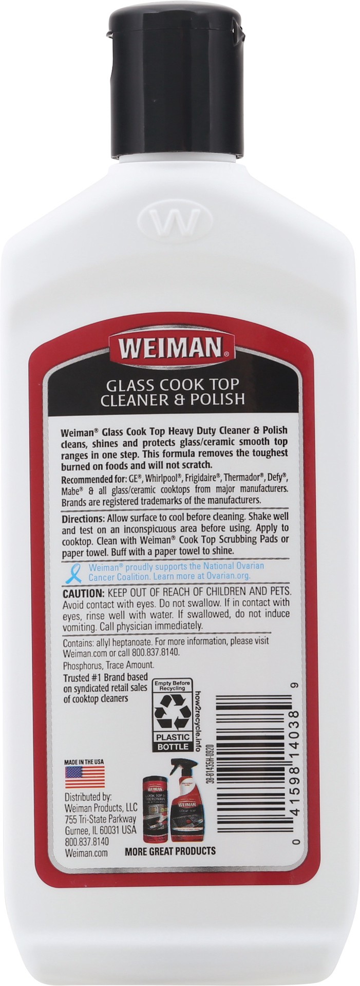 Trusted no. 1 brand. Removes burned on food. Weiman glass cook top heavy duty cleaner & polish cleans, shines and protects glass/ceramic smooth top ranges in one step. This formula removes the toughes…