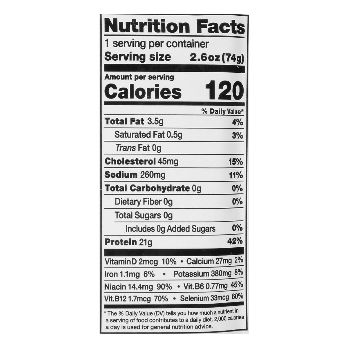 Pure wild tuna seasoned with black pepper, celery seed, lemon peel, garlic, onion, parsley, lemon, and a touch of avocado oil. 21 grams protein. Paleo Certified. Gluten free. More Omega 3s. Non GMO Pr…