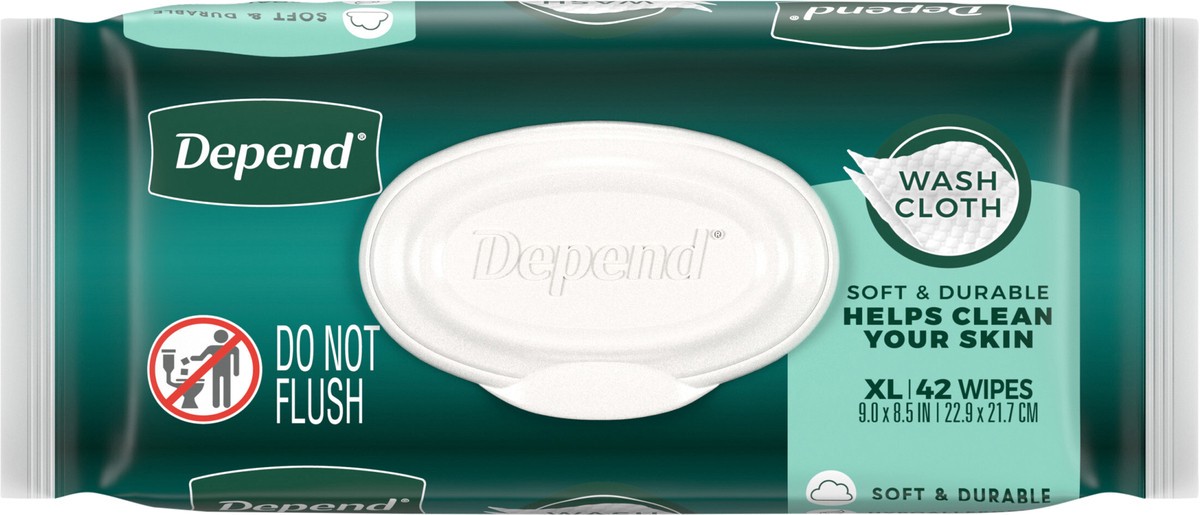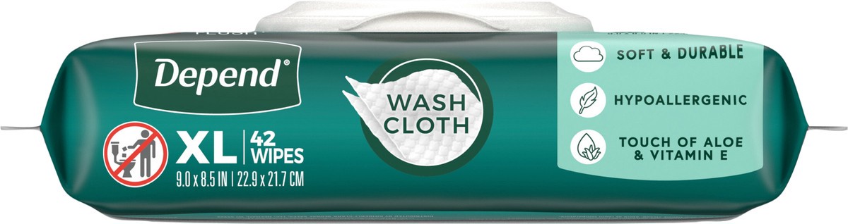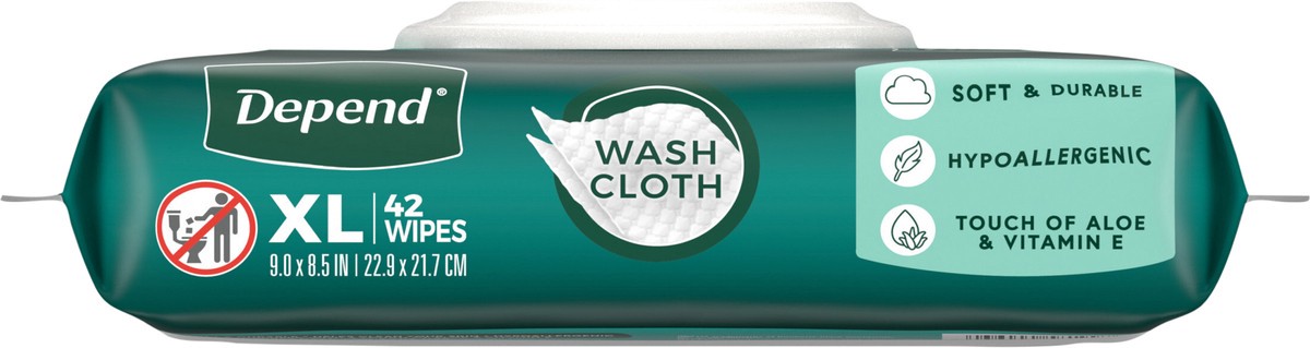 Depend XL Disposable Washcloths for Adults, 1 Flip-Top Pack, 42 Wipes Per Pack (42 Wipes Total)
