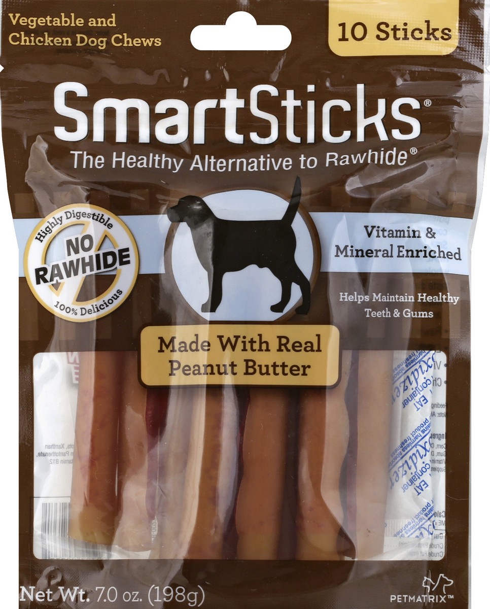 Made with real peanut butter. Vitamin & mineral enriched. No rawhide. Highly digestible. 100% delicious. Helps maintain healthy teeth & gums. The healthy alternative to rawhide. SmartSticks have all t…