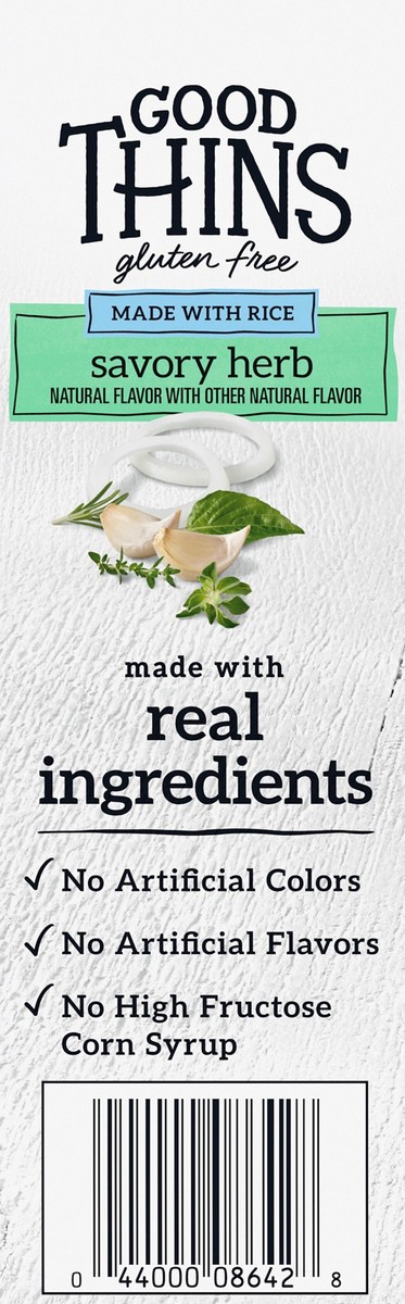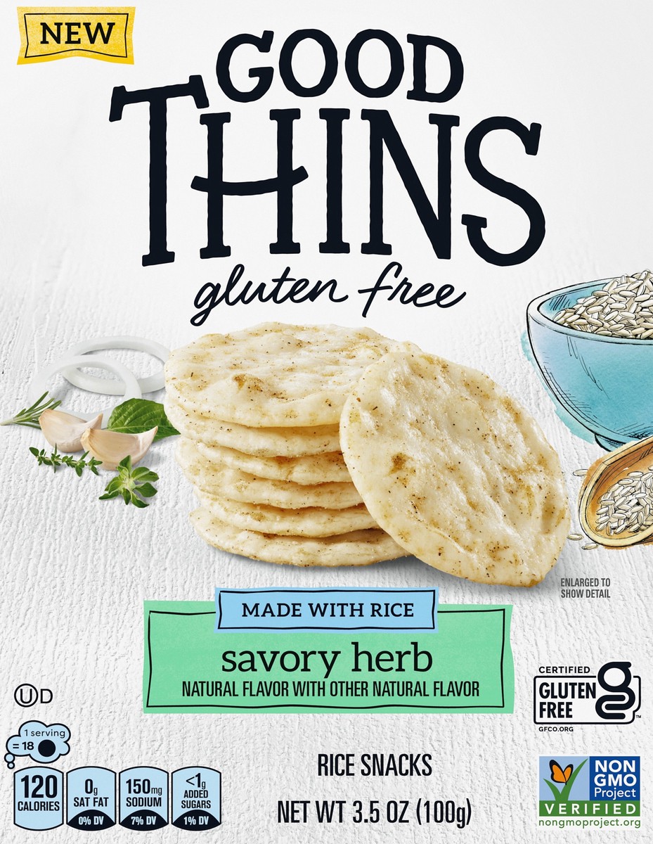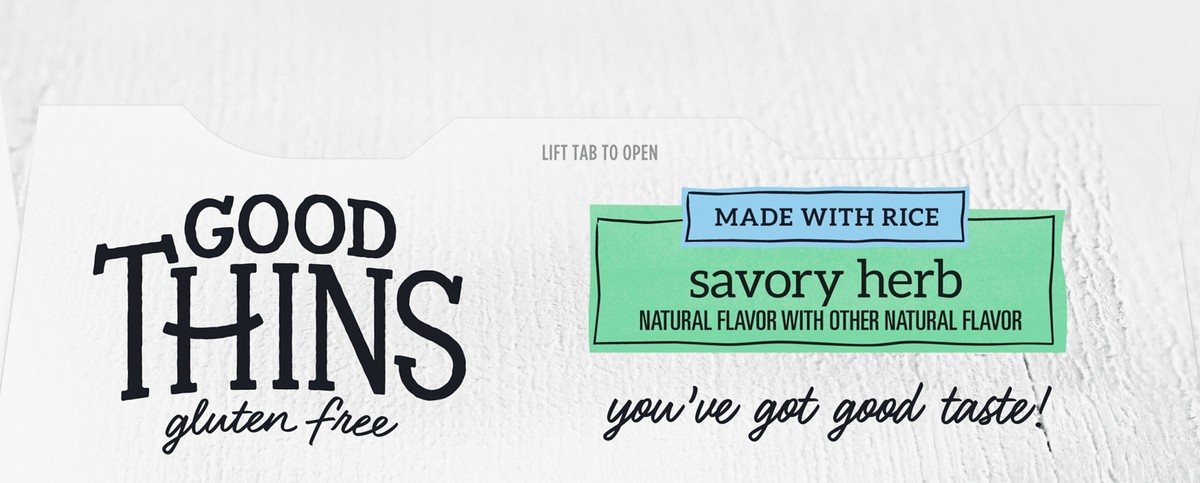Enjoy a wholesome snack anytime, anywhere with Good Thins Savory Herb Rice Snacks Gluten Free Crackers. Crafted with rice, these gluten free snack crackers feature a savory herb flavor for a simply de…