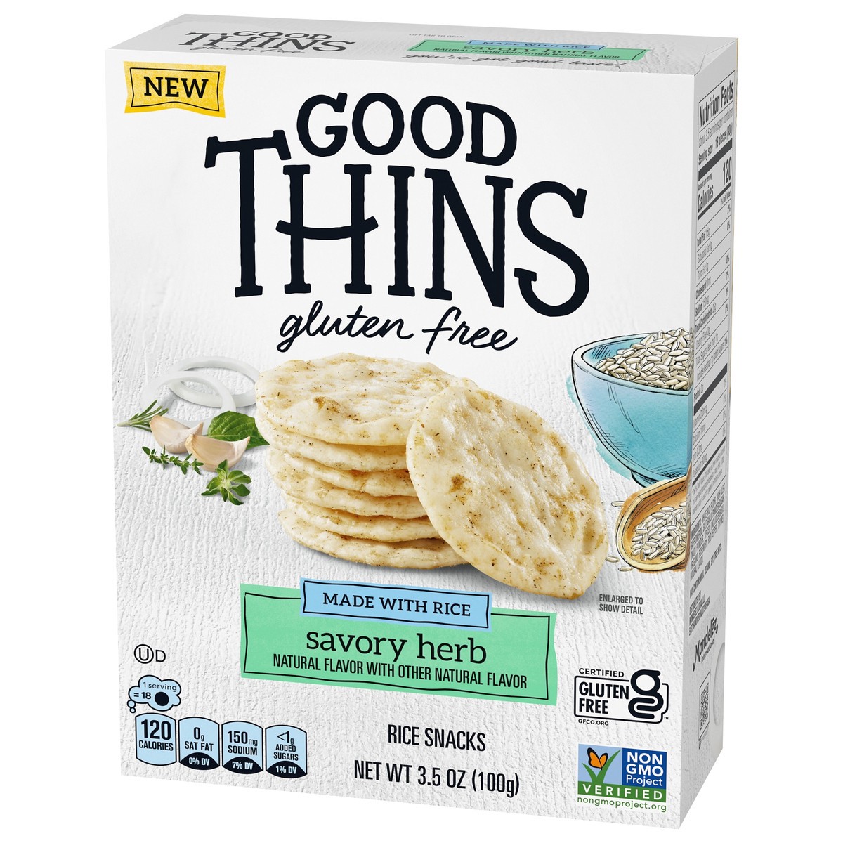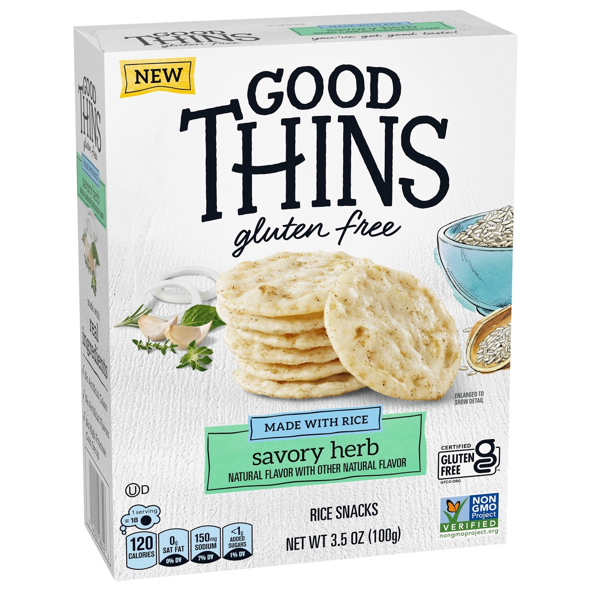 GOOD THINS Savory Herb Rice Snacks Gluten Free Crackers, Snack Crackers, 3.5 oz