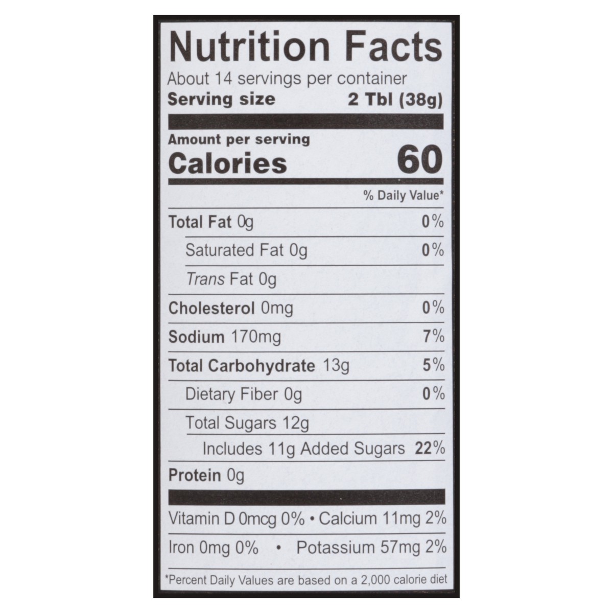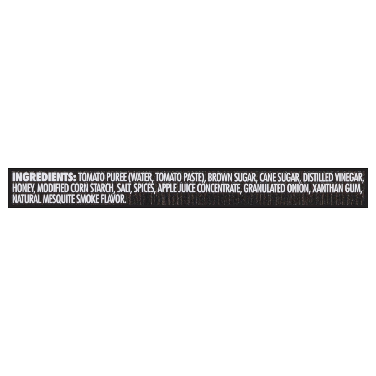Tomato Puree (Water, Tomato Paste), Brown Sugar, Cane Sugar, Distilled Vinegar, Honey, Modified Corn Starch, Salt, Spices, Apple Juice Concentrate, Granulated Onion, Xanthan Gum, Natural Mesquite Smok…