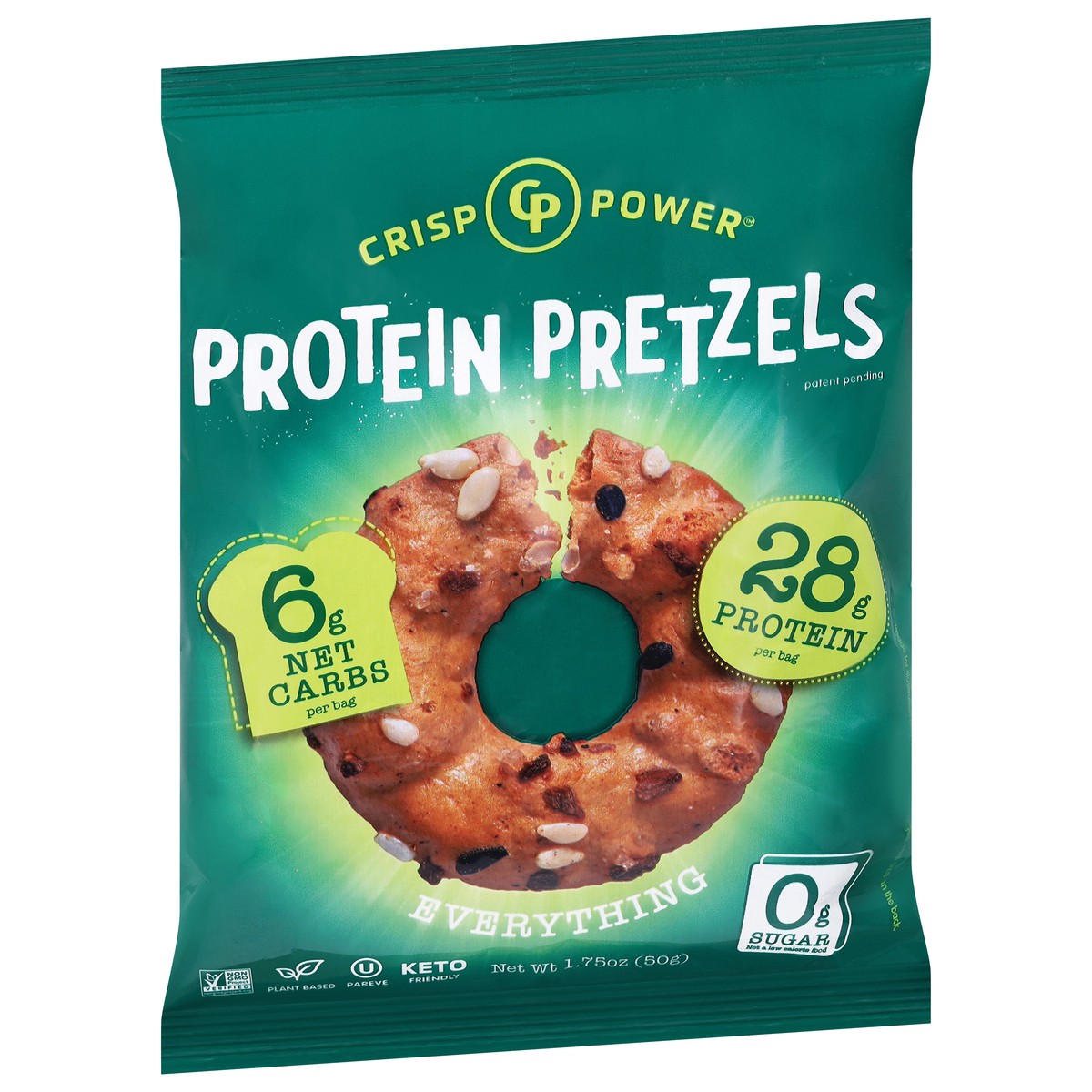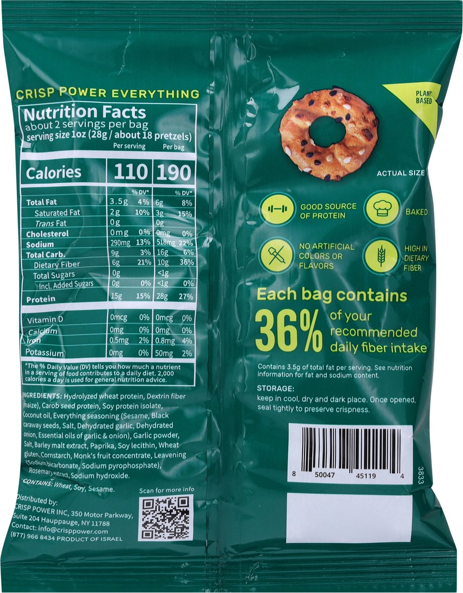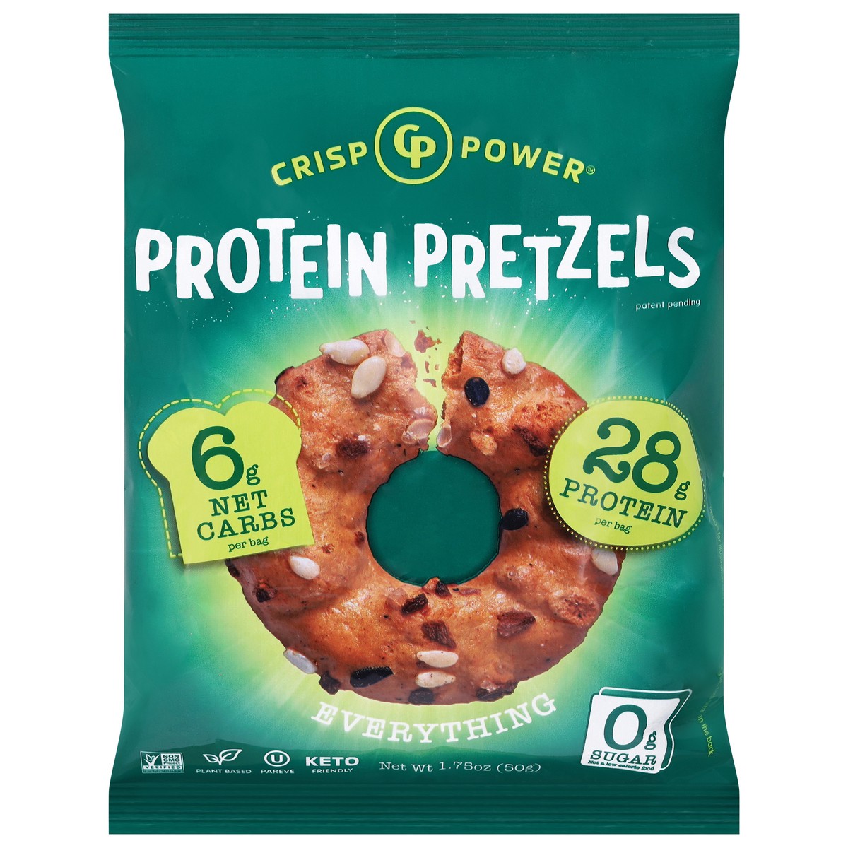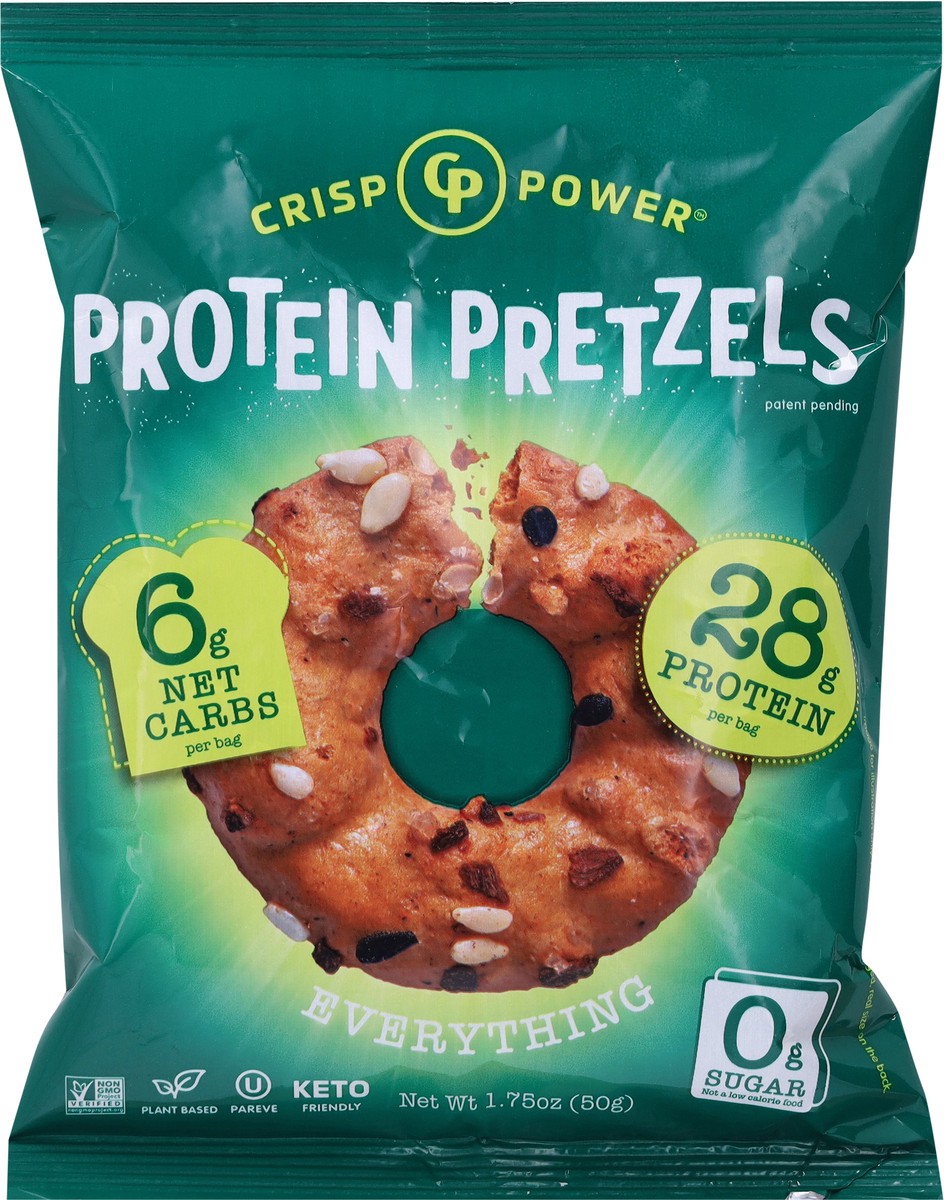 Hydrolyzed Wheat Protein, Dextrin Fiber (Maize), Carob Seed Protein, Soy Protein Isolate, Coconut Oil, Everything Seasoning (Sesame, Black Caraway Seeds, Salt, Dehydrated Garlic, Dehydrated Onion, Ess…