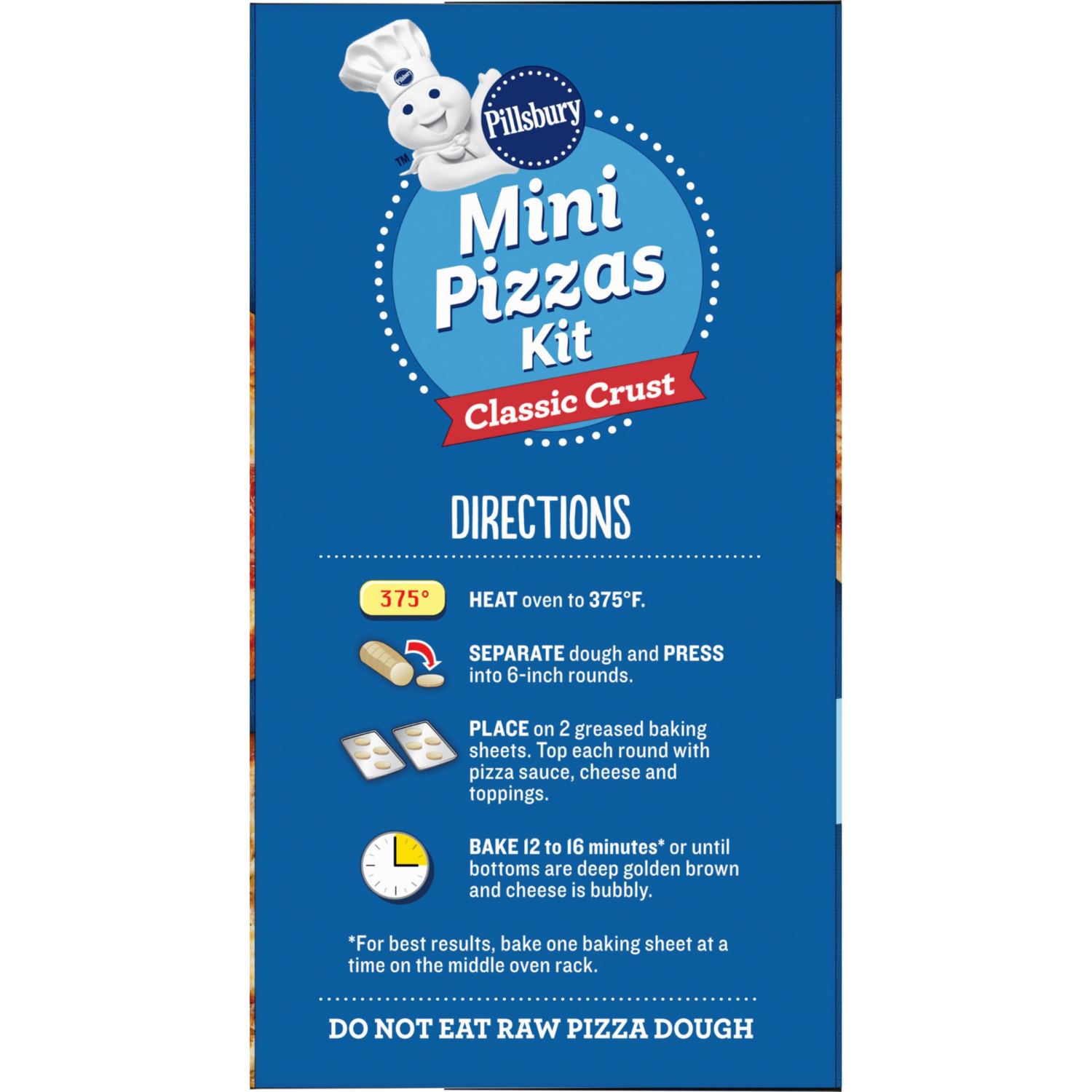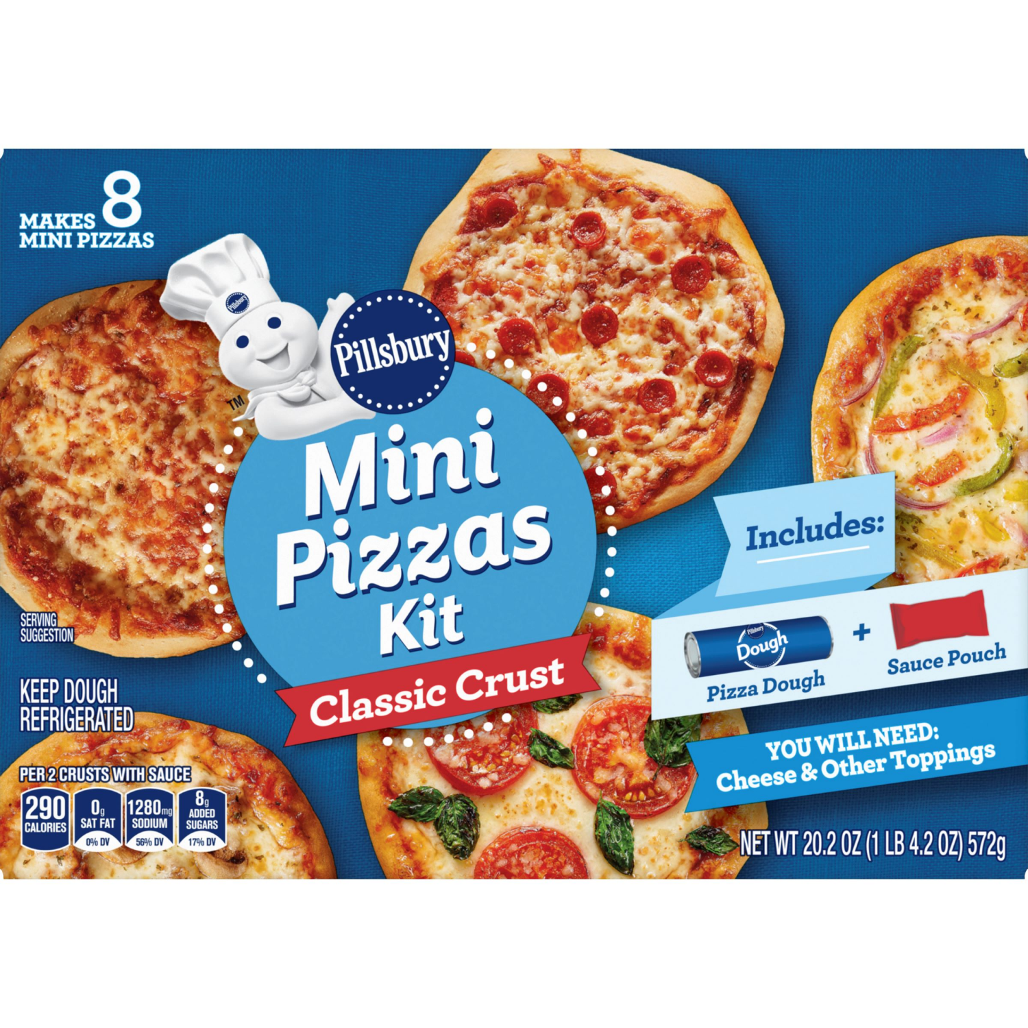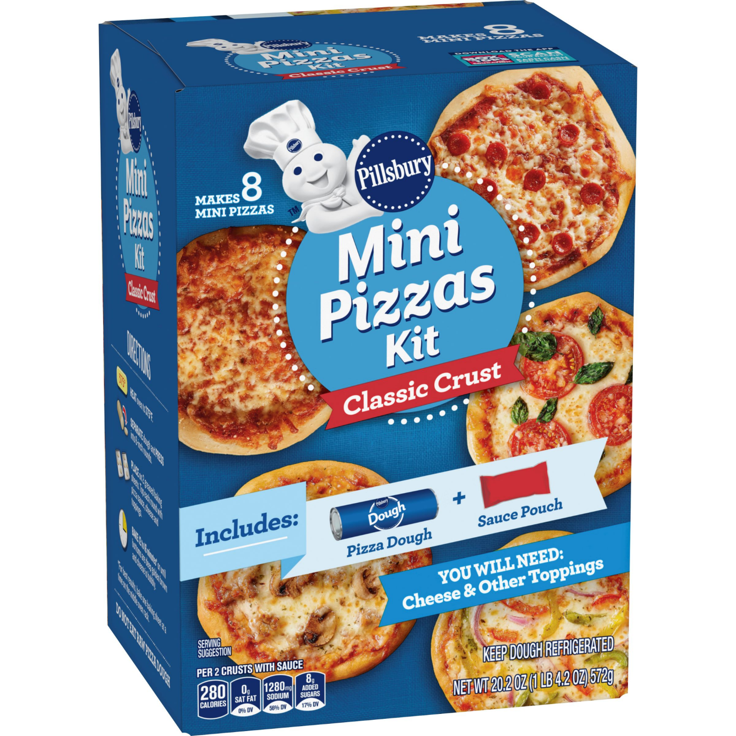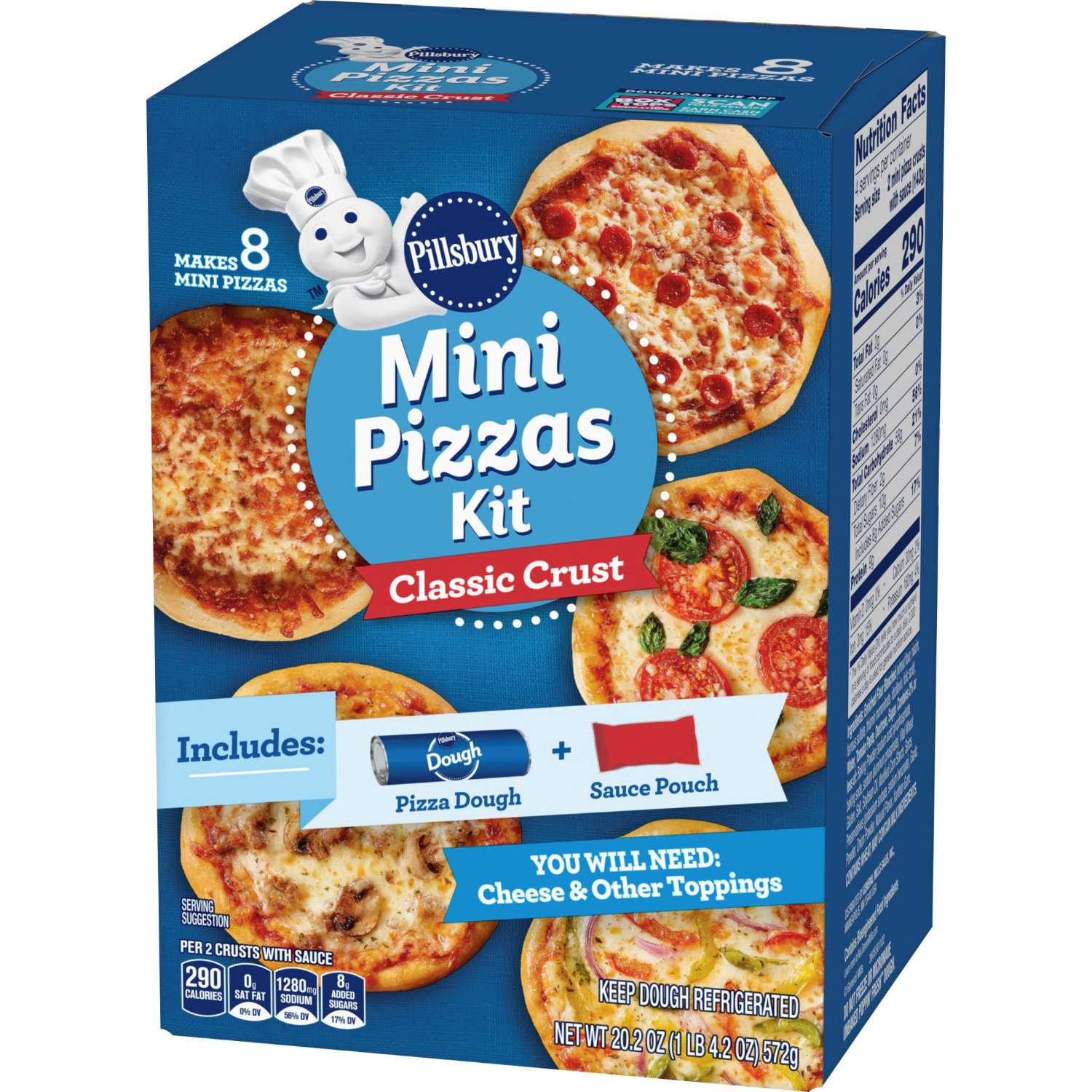 Everyone loves homemade pizza night! We made it easy with the Pillsbury Mini Pizzas Kit. Each kit contains 8 Pillsbury Mini Pizzas Kit. Just add sauce, cheese, and toppings to our classic ready-to-bak…
