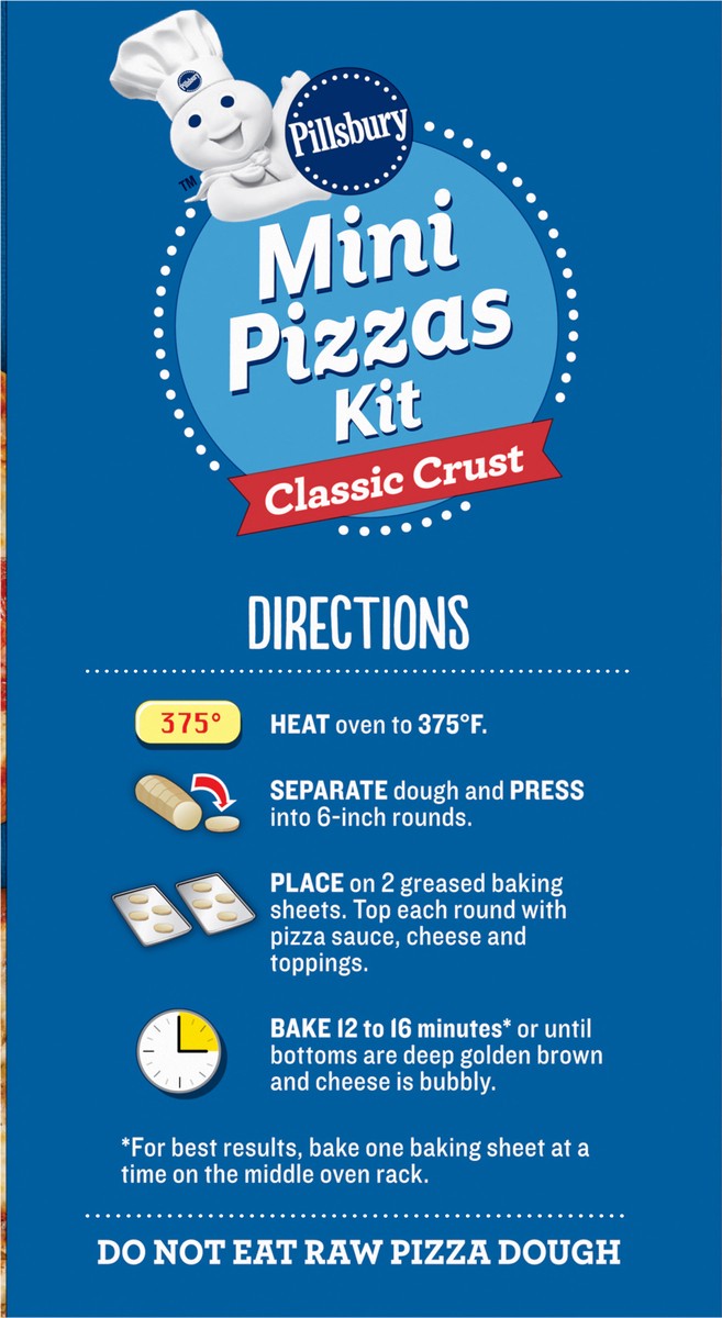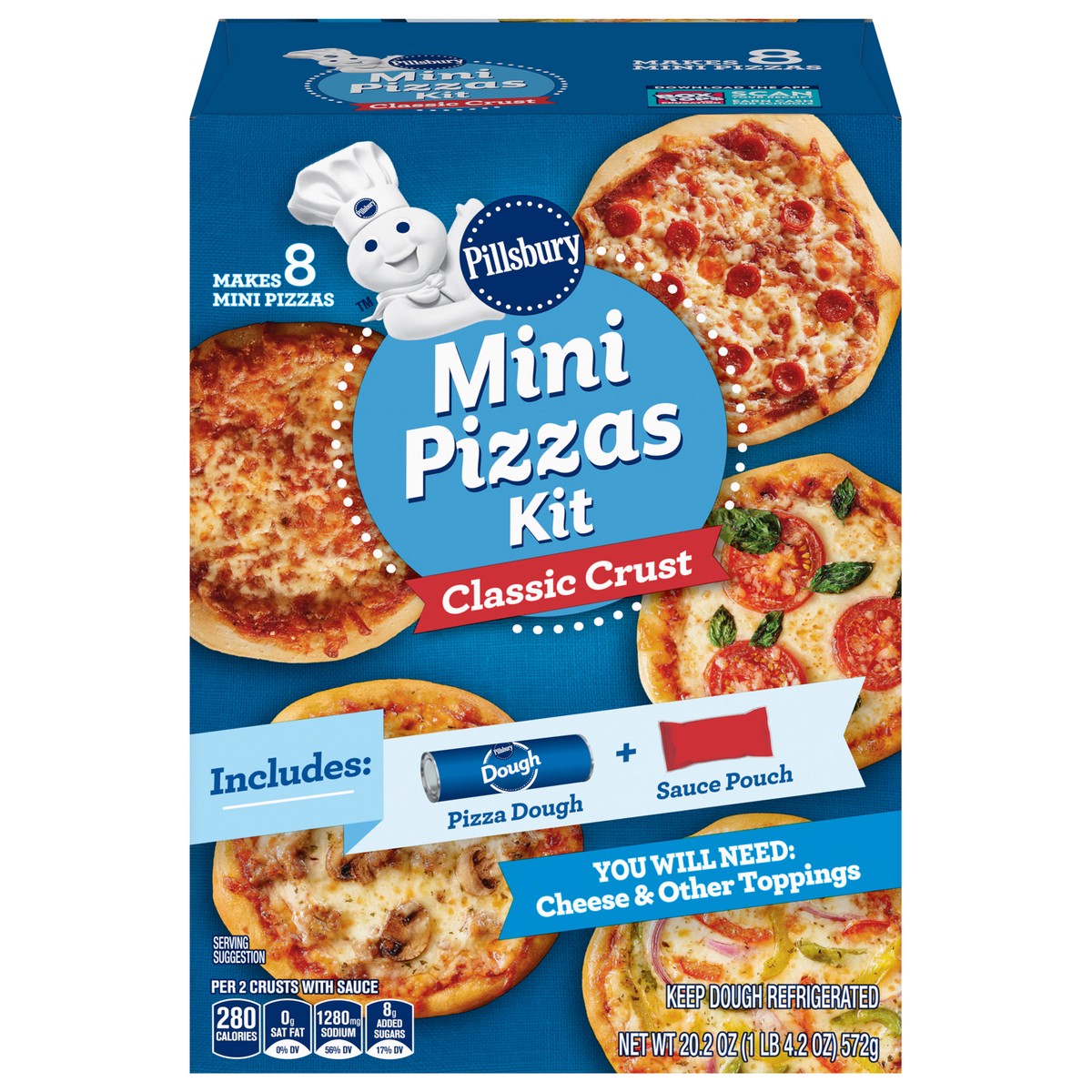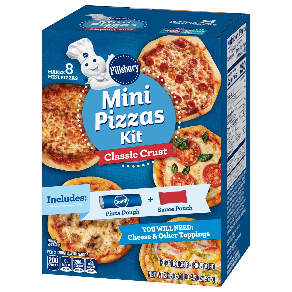Everyone loves homemade pizza night! We made it easy with the Pillsbury Mini Pizzas Kit. Each kit contains 8 Pillsbury Mini Pizzas Kit. Just add sauce, cheese, and toppings to our classic ready-to-bak…