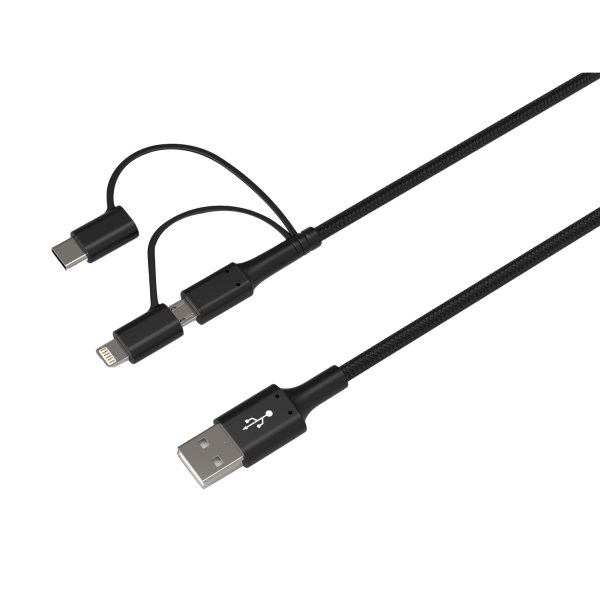 Ativa® 3-in-1 Micro, USB-C & Lightning Cable, 6', Black