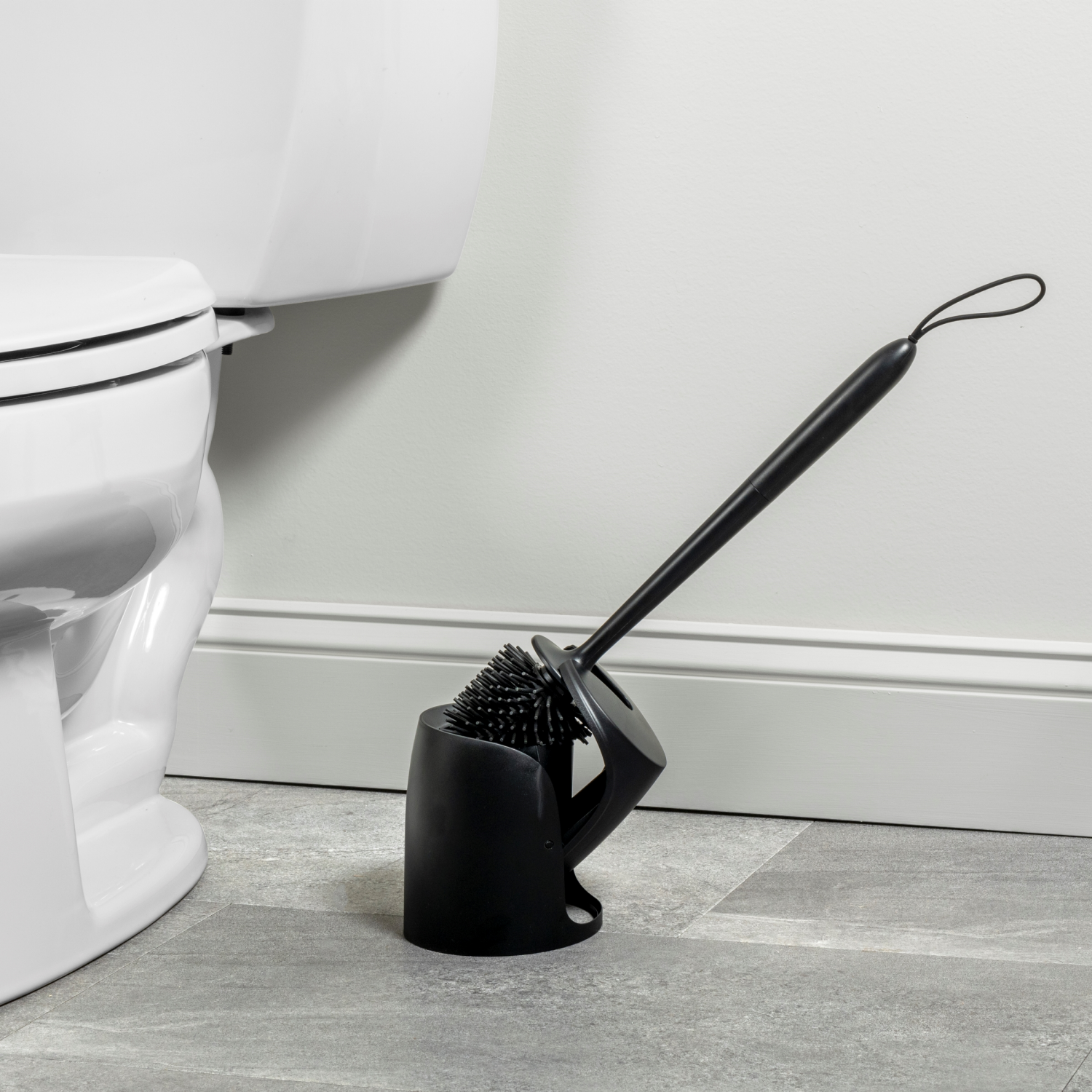 Zenna Home Toilet Bowl Brush Holder with Self-Closing Lid, Black