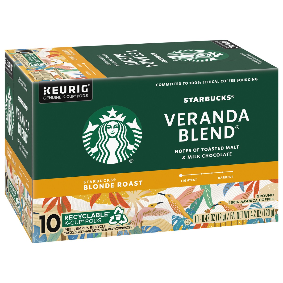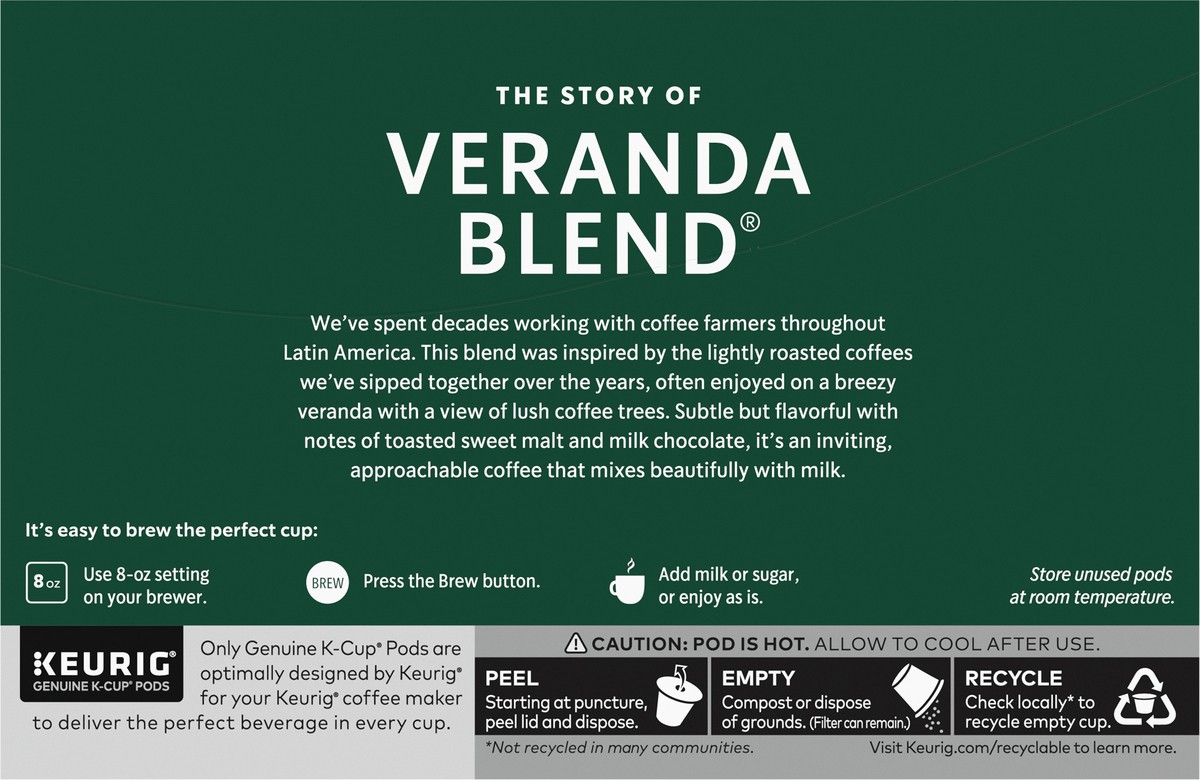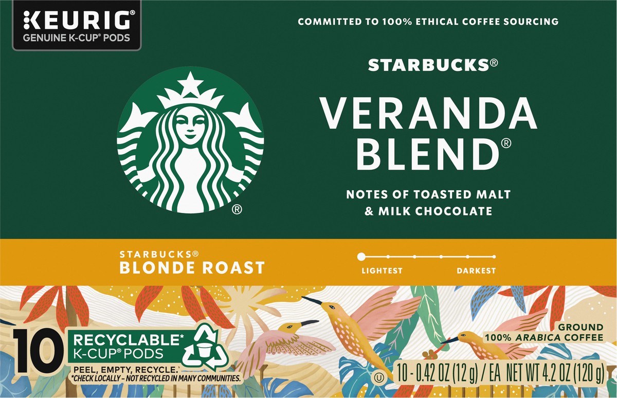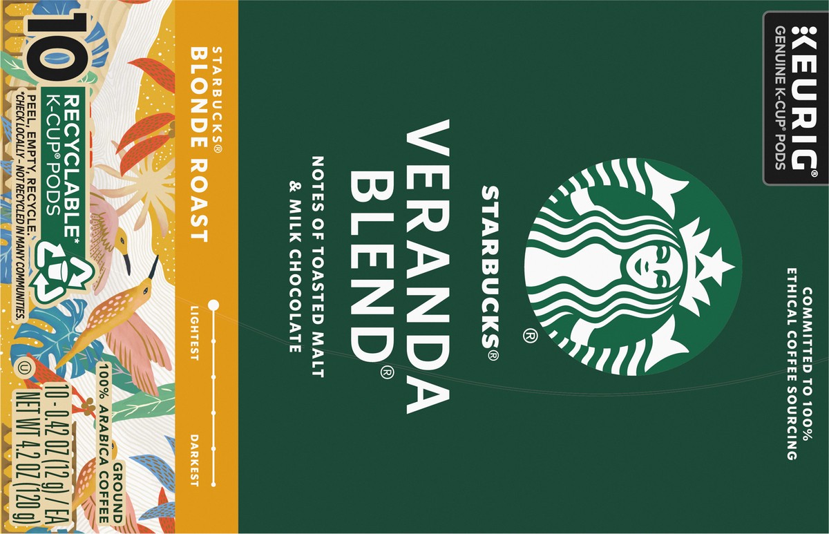 Starbucks Veranda Blend 100% Arabica Blonde Roast K Cup Coffee Pods Box 10 Count - Each