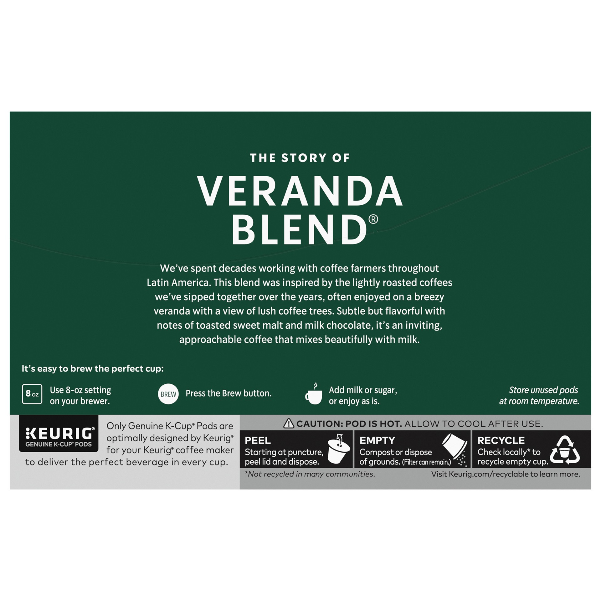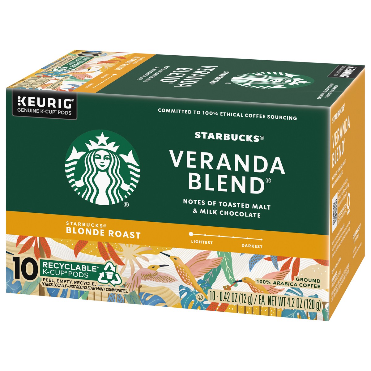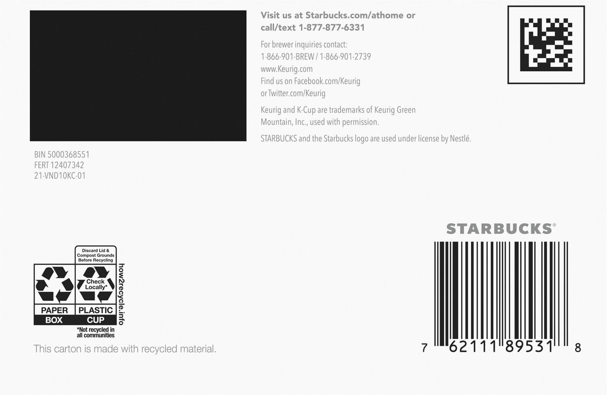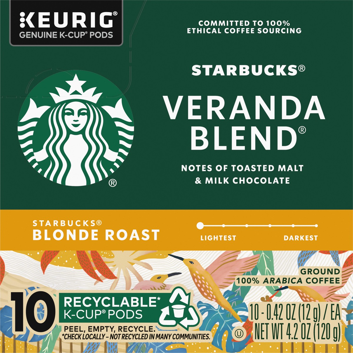 Starbucks Veranda Blend 100% Arabica Blonde Roast K Cup Coffee Pods Box 10 Count - Each