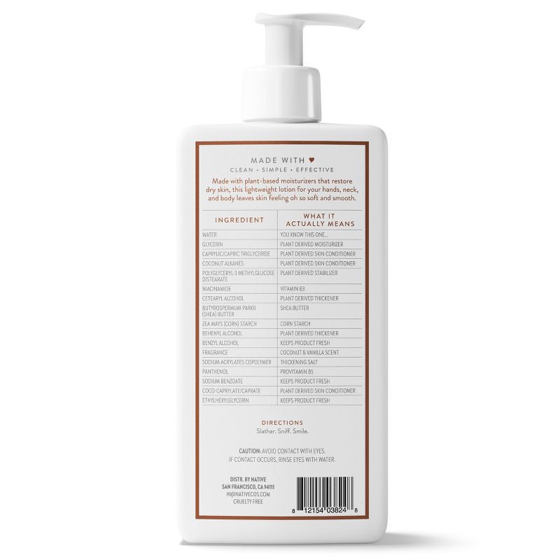 Native Body Lotion Pump - Coconut & Vanilla - 16.5 fl oz: Paraben-Free, Sulfate-Free, Whole Body, Normal & Sensitive Skin