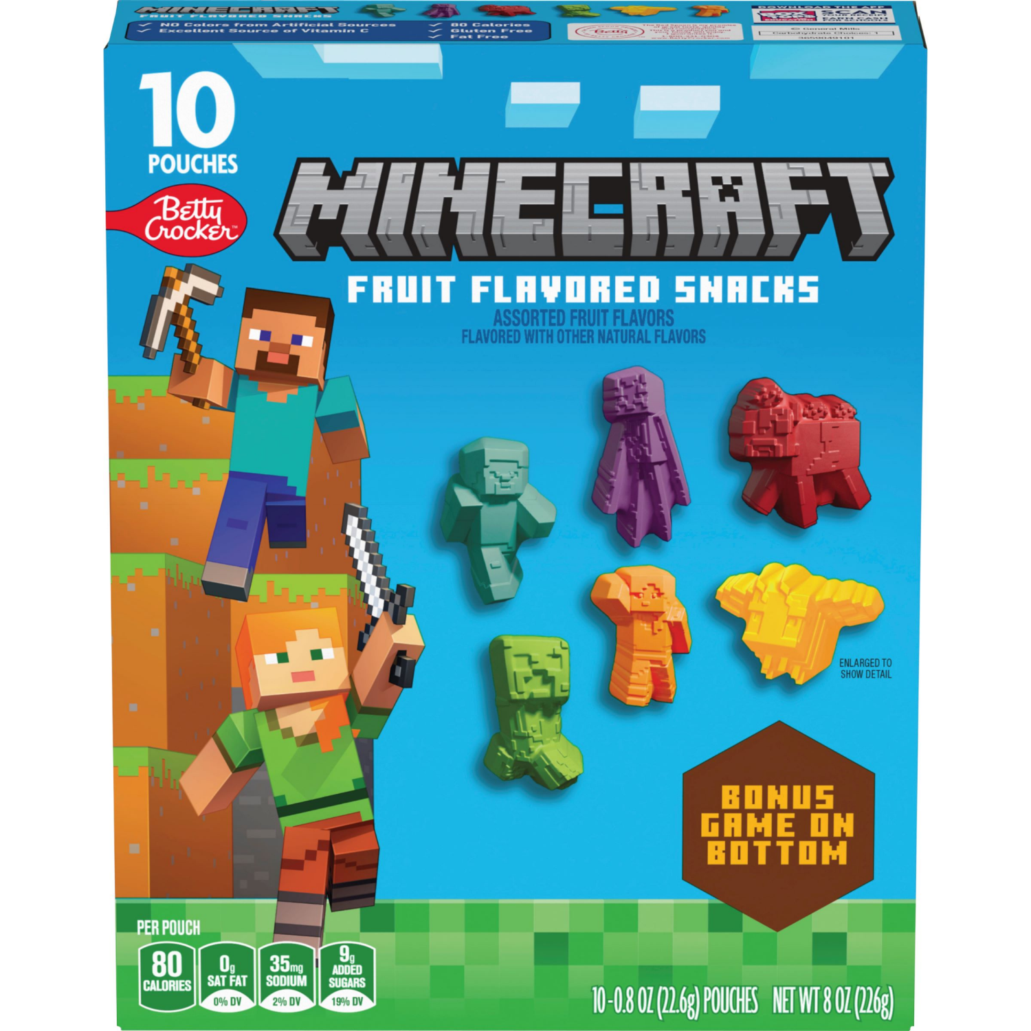 Betty Crocker Minecraft Fruit Flavored Kids Snacks, Fat Free and Gluten Free Snack, 8 oz (10 Pouches)