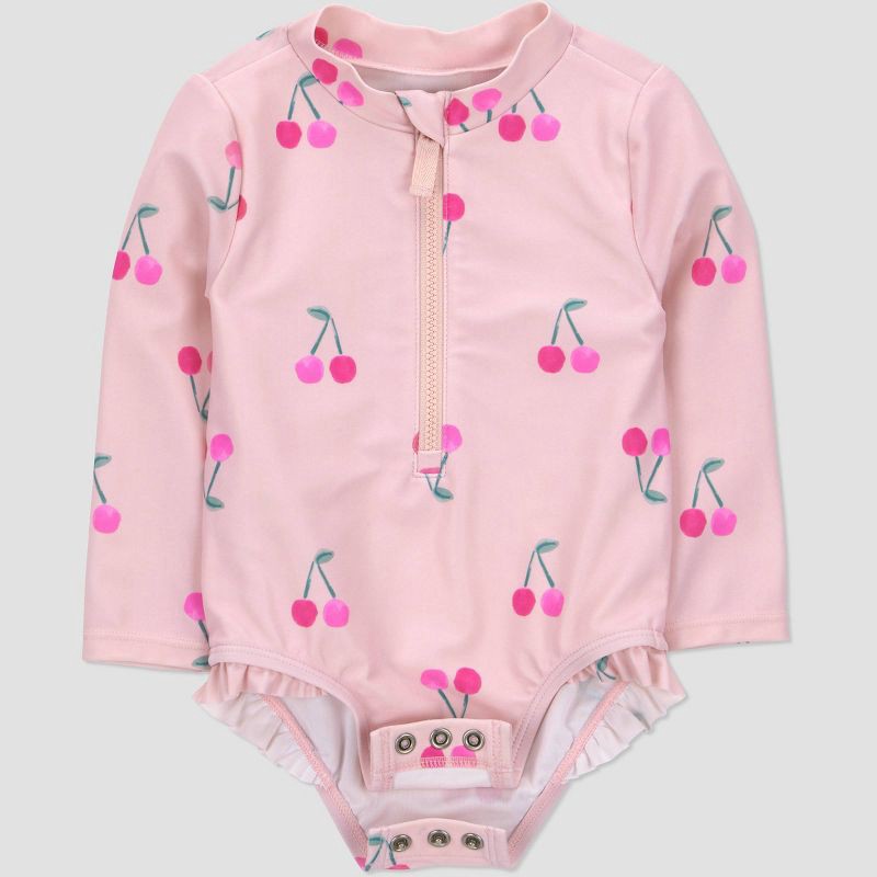 Carter's Just One You® Baby Girls' Cherry Long Sleeve Rash Guard One Piece Swimsuit - Pink 9M