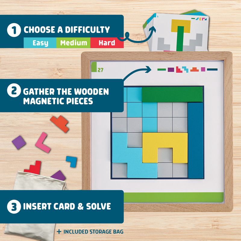 - Reusable Puzzle Set – Play again and again; all pieces fit neatly back in the storage bag.