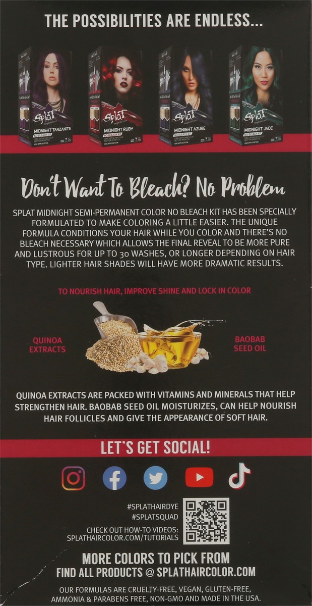 Rebellious colors. Long lasting hair color. Best for brunettes. The possibilities are endless - Extreme. Shocking. Don't want to bleach? No problem. Splat midnight semi-permanent color no bleach kit h…