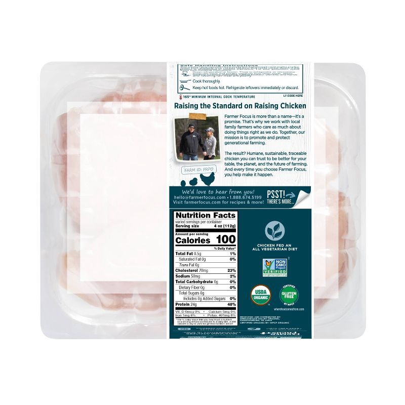 Convenient to cook and filled with flavorFarmer Focus Chicken Tenders are a family favoriteand perfect for breading, dipping, or adding to pasta.Organic, Sustainable, and Humanely RaisedProudly USDA O…
