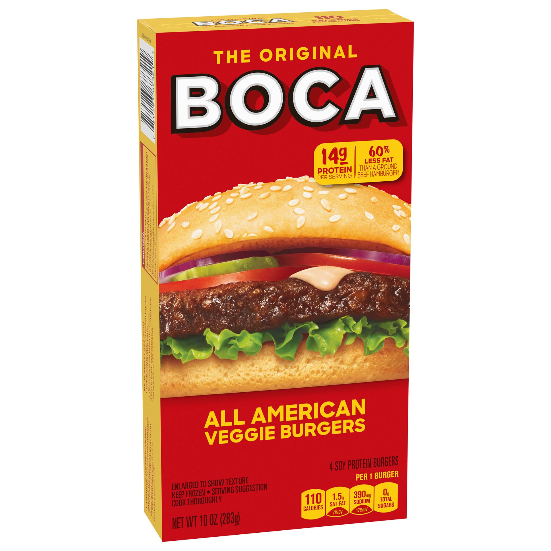 BOCA All American Veggie Burgers are a tasty, meatless option, perfect as a vegetarian-friendly frozen entree. Made with soy protein, garlic, onion and cheddar cheese, our veggie patties are packed fu…