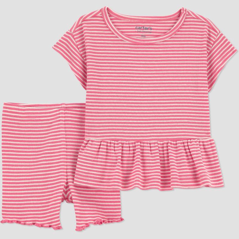 Carter's Just One You® Baby Girls' 4pc Stripe Watermelon T-Shirt and Bike Shorts Set - Green/Pink 12M