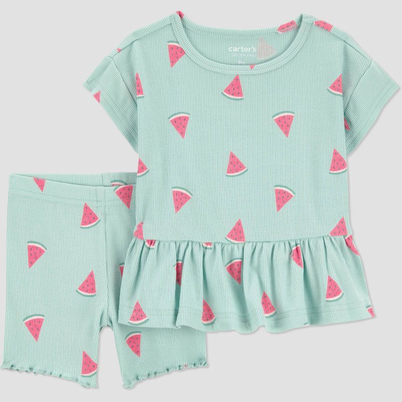 Carter's Just One You® Baby Girls' 4pc Stripe Watermelon T-Shirt and Bike Shorts Set - Green/Pink 6M