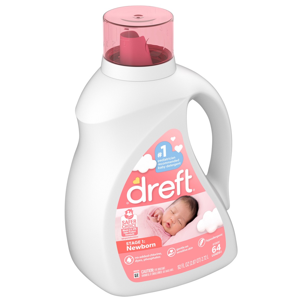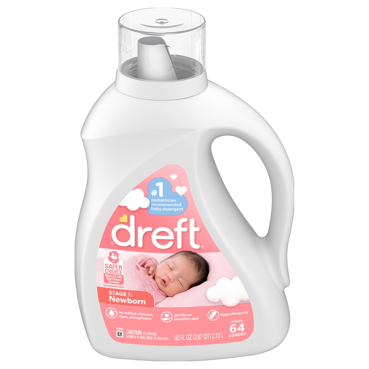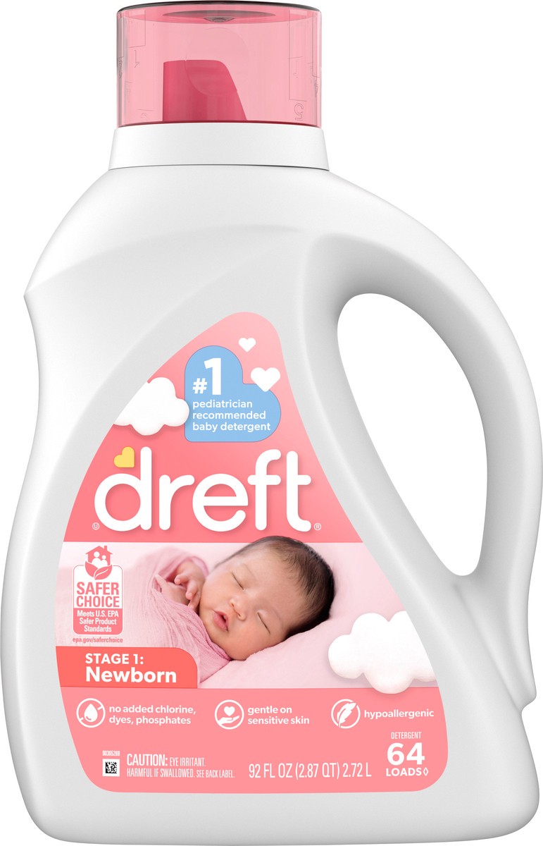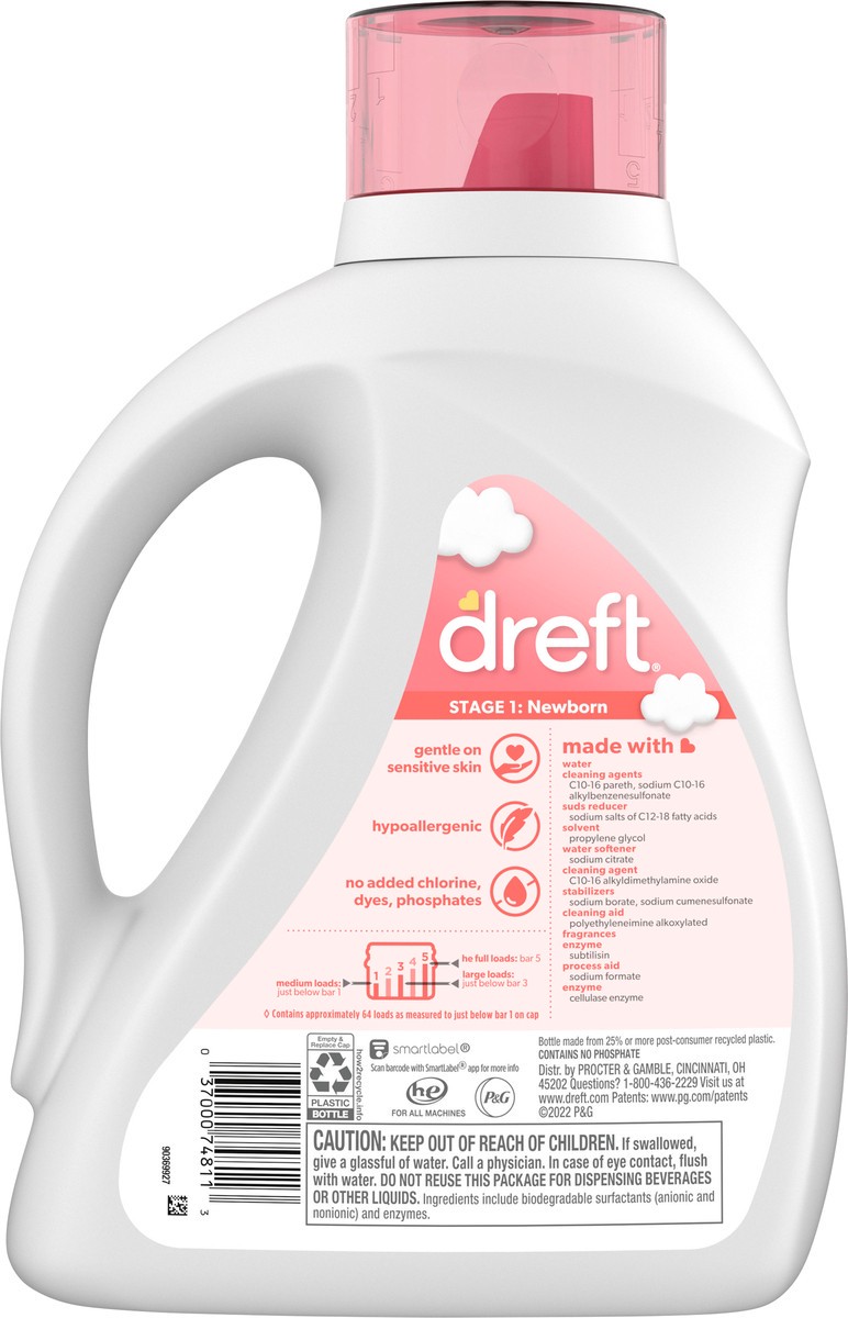 Dreft Stage 1 Newborn Baby Liquid Laundry Detergent, Gentle on Sensitive Skin, HE Compatible, 64 loads