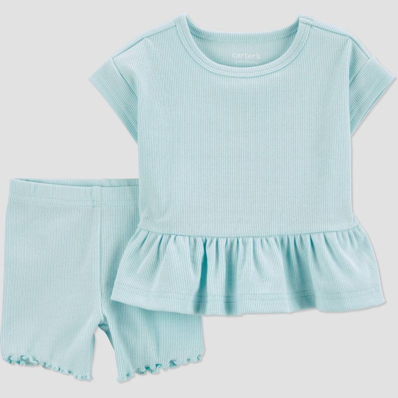 Carter's Just One You® Baby Girls' 4pc Floral T-Shirt and Bike Shorts Set - Mint Green 9M