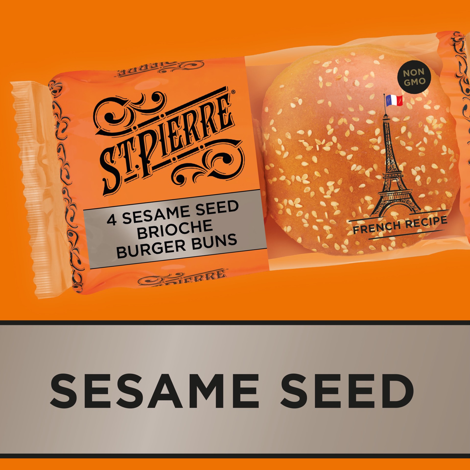 St Pierre Sesame Seed Brioche Burger Buns 4 - 8.8 Oz