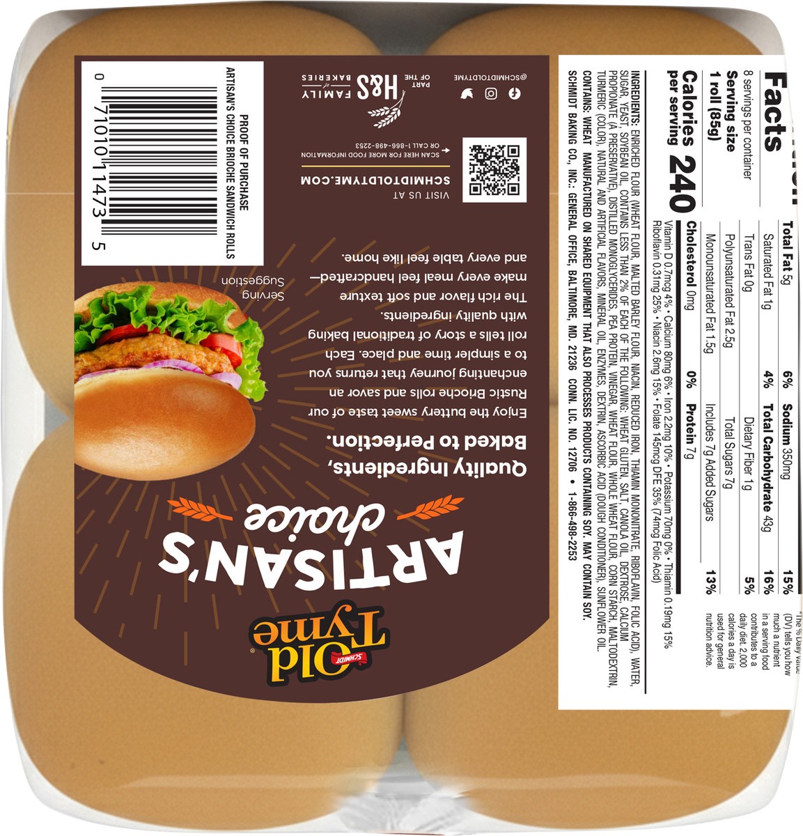 Old Tyme Artisan's Choice Rustic Brioche Sandwich Rolls - 8 pc