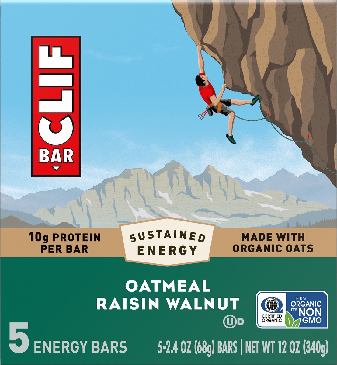 CLIF BAR - Oatmeal Raisin Walnut - Made with Organic Oats - Energy Bars - Non-GMO - Plant Based Protein Bars (5 Pack)