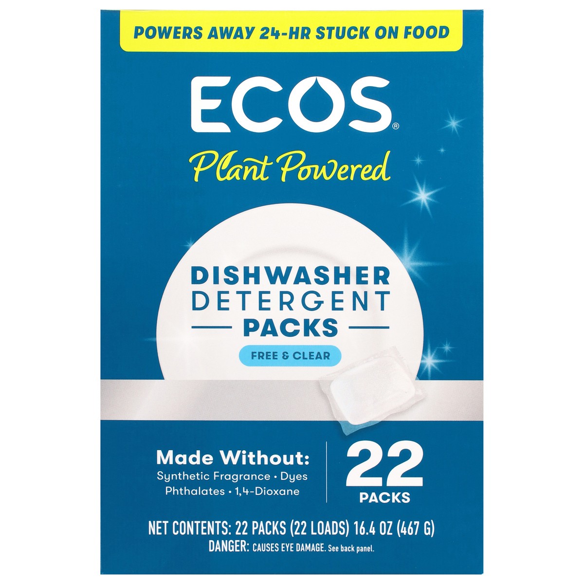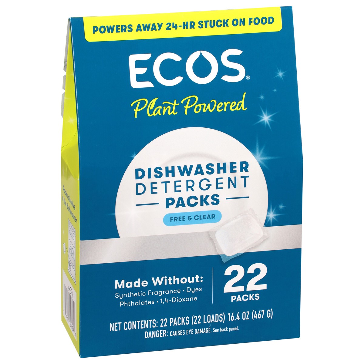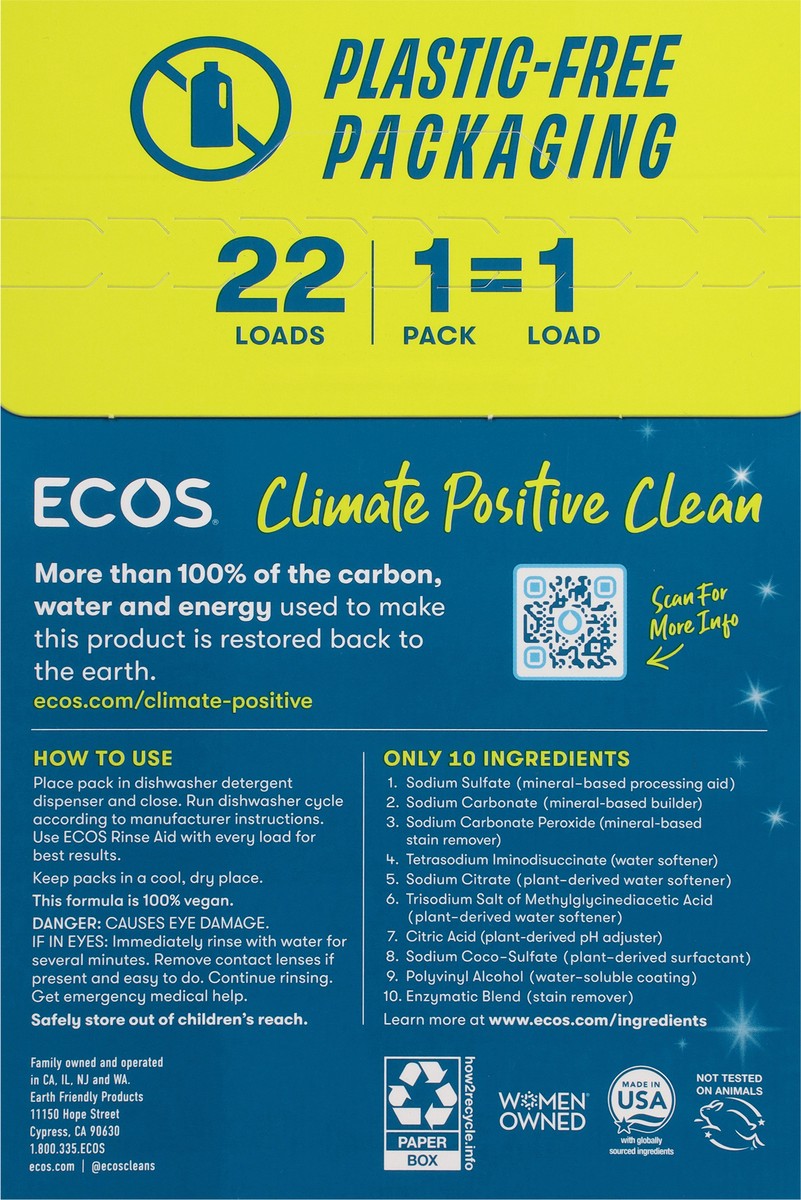 Ecos Plant Powered Free & Clear Dishwasher Detergent Packs 22 ct