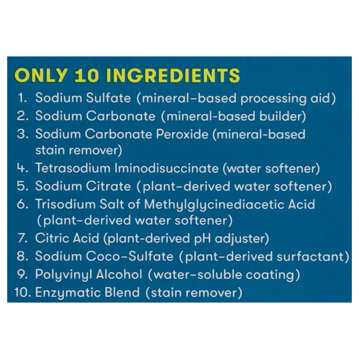 Premesured. No unwrapping. 100% water soluable. With OXO Brite and soy based fabric softener. Petrochemical free - made from plants. Neutral pH. Formaldehyde free. Ideal for high efficiency front & to…
