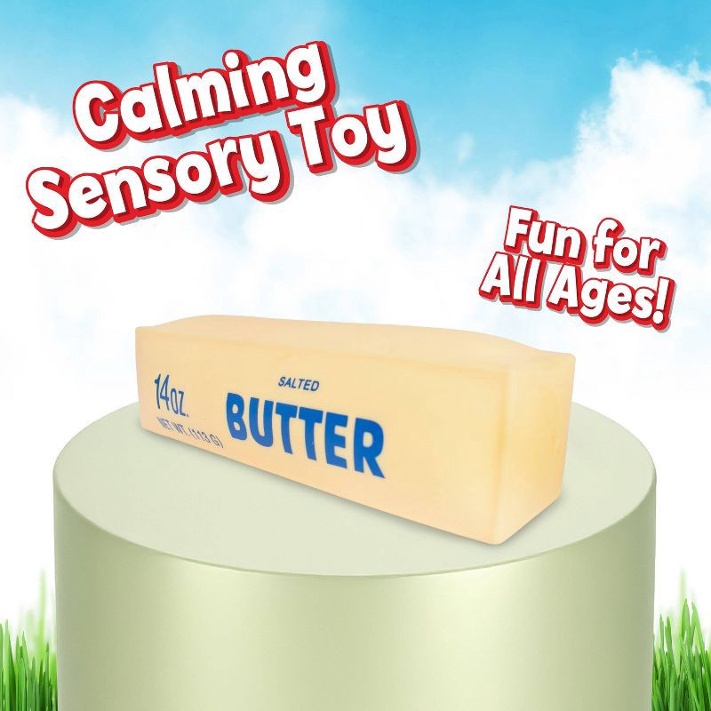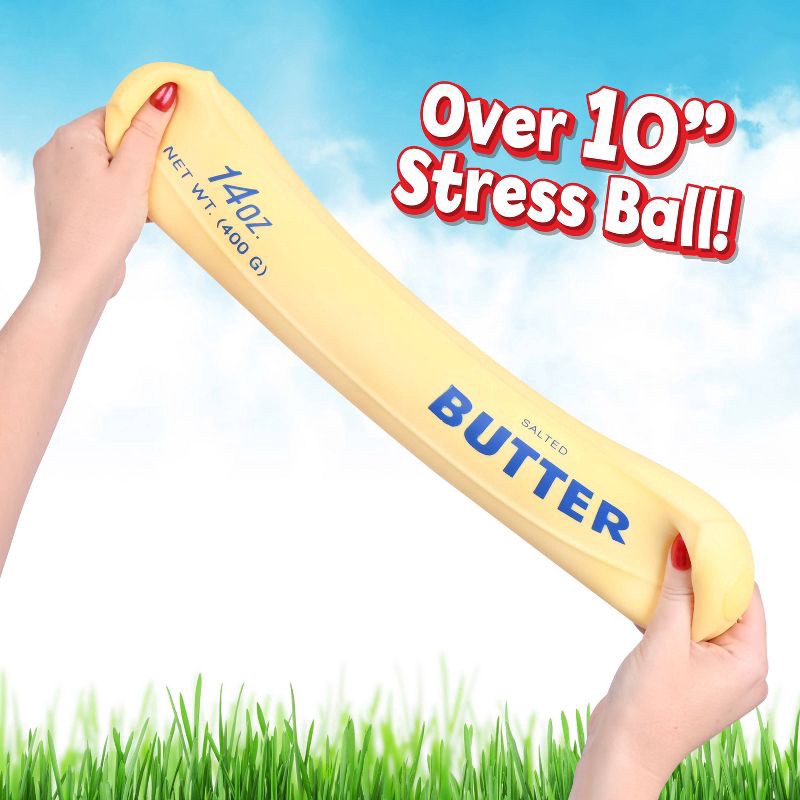 - SQUISHY SATISFACTION: Squeeze, squish, and stretch your stress away with a realistic butter stick that always returns to its shape.