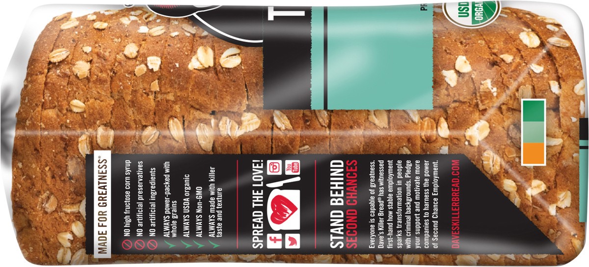 Dave's Killer Bread Sprouted Whole Grains Thin-Sliced bread loaf is USDA organic bread with slightly sweet taste and soft texture from the delicious sprouted whole grains baked into each loaf. 3g prot…