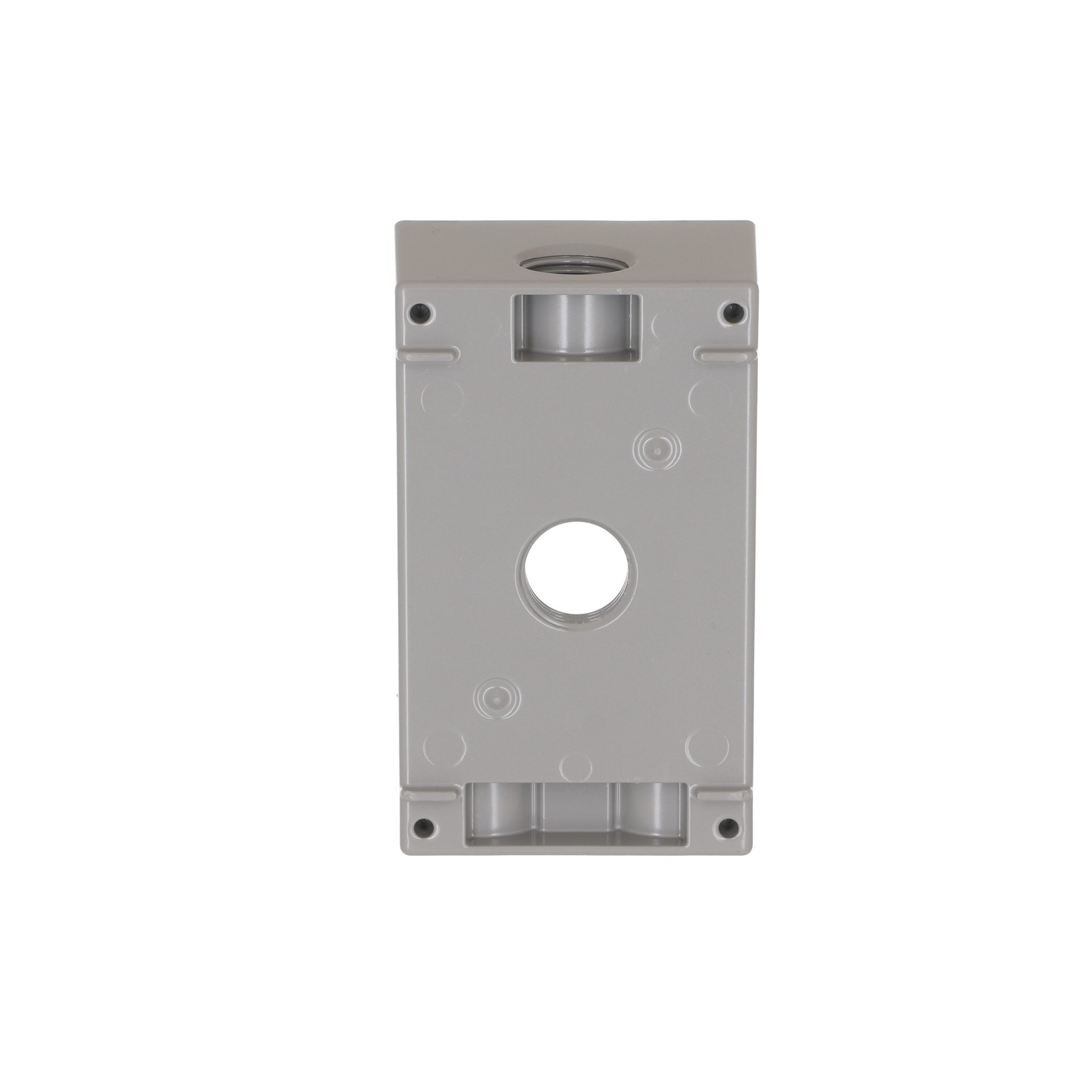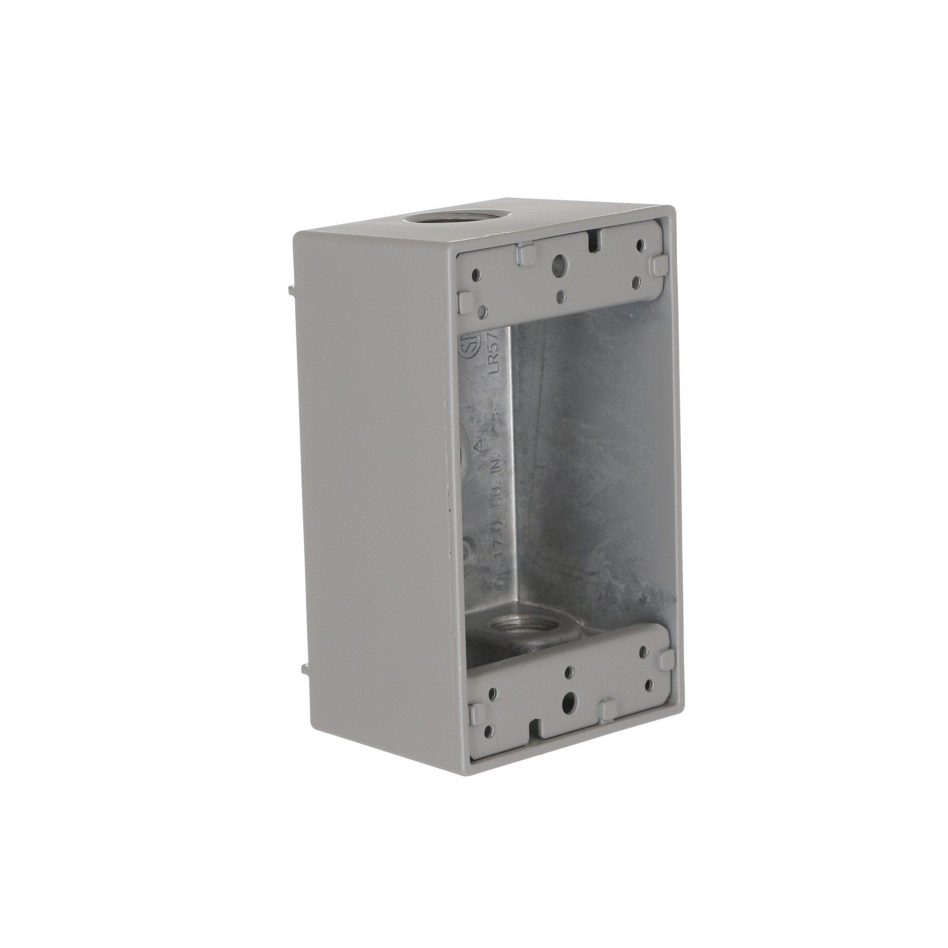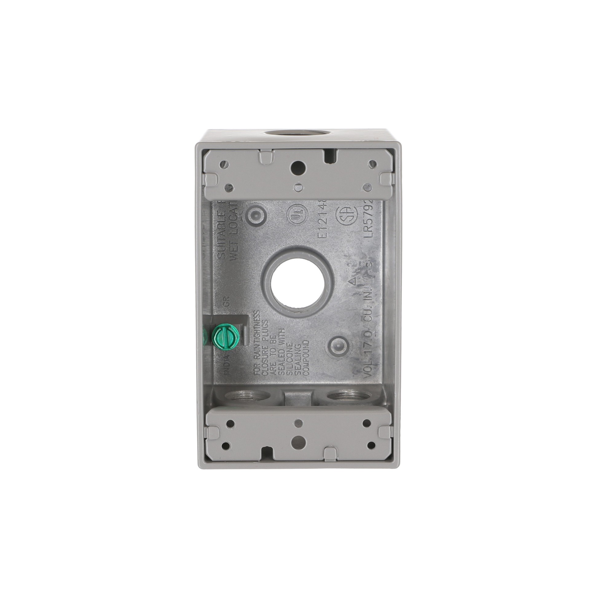 Die-cast aluminum construction. Durable powder coat finish. Includes mounting lugs. 18.3 cu in capacity. Four 1/2 in threaded outlets. NEMA 3R rated. cULus Listed.