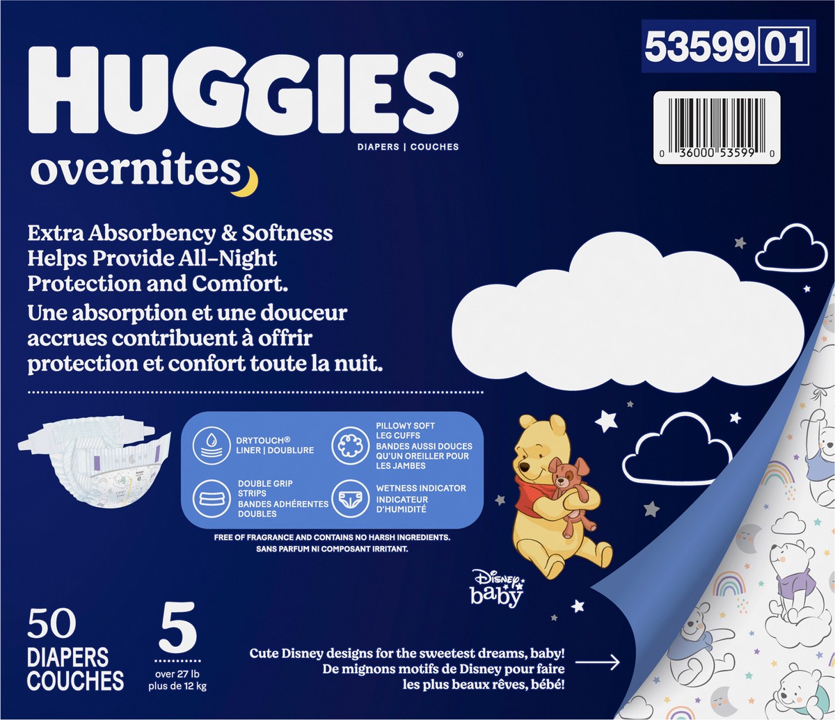 Huggies Overnites Nighttime Baby Diapers, Size 5 (27+ lbs), 50 Ct