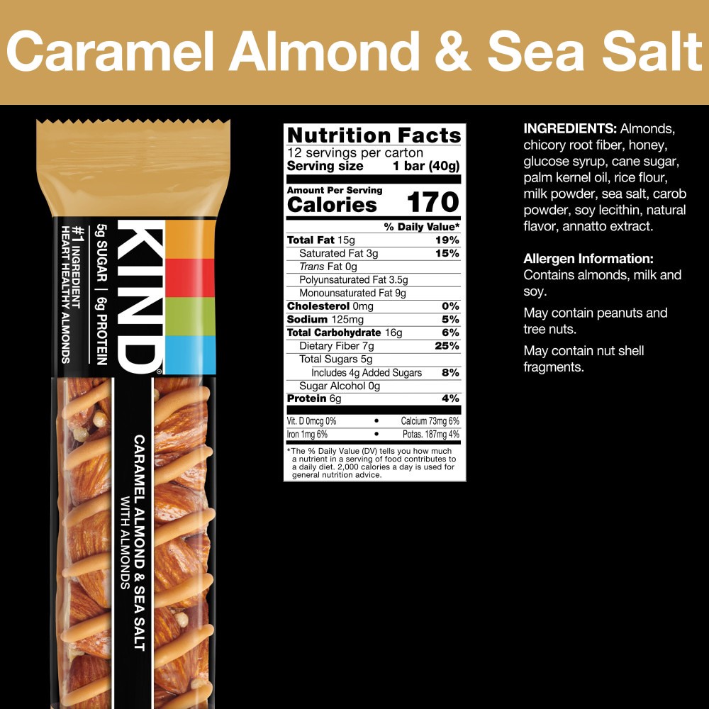 Almonds, Chicory Root Fiber, Honey, Palm Kernel Oil, Sugar, Non-GMO Glucose, Crisp Rice, Soy Lecithin, Sea Salt, Milk Powder, Carob Powder, Natural Flavor, Annatto.